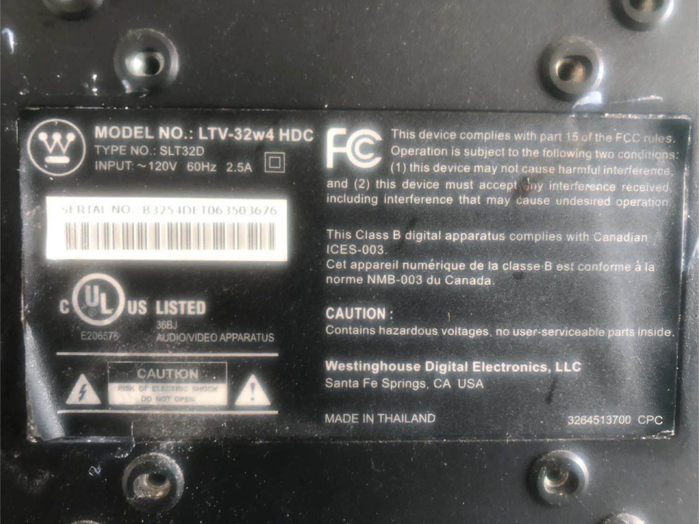 Selling a Westinghouse 32" LCD TV, model LTV-32w4 HDC. This TV is in good working condition and would be great for a smaller space or as a secondary screen. It's a solid choice for basic viewing needs!