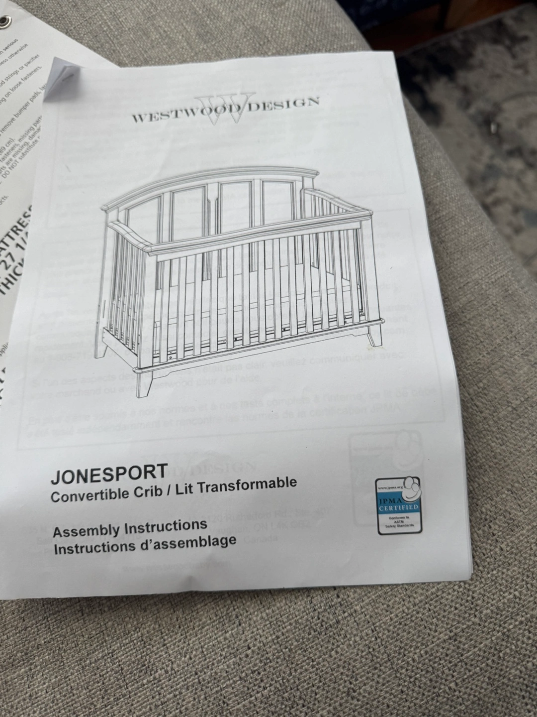 Cash only $250 Selling a Westwood Design Jonesport Convertible Crib. It's in great shape and ready for a new home! Assembly instructions are included to help you set it up easily