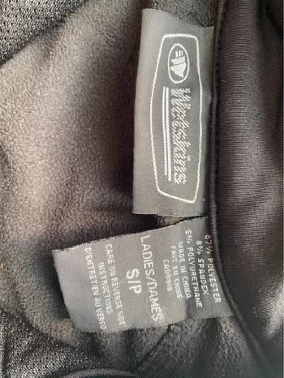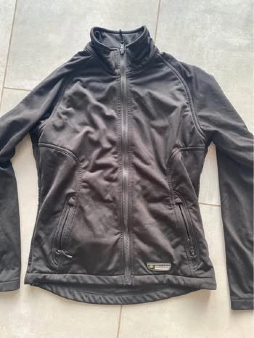 Selling a fitted Westskins jacket in size small and great waist form. It's black and made of 87% polyester and 8% spandex. Perfect for layering or wearing on its own during milder weather!