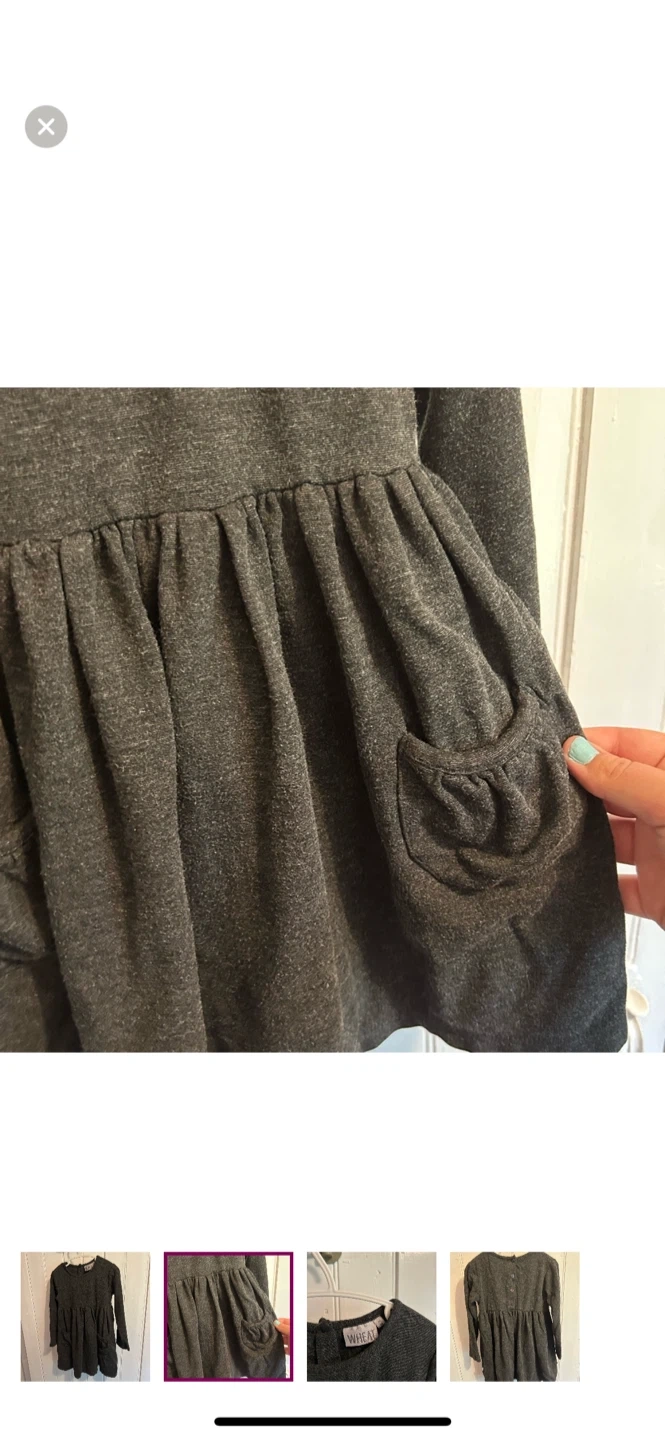 Wheat brand. Long sleeve dress, buttons on the back. Grey in colour. Size 3t. Brand new condition, very minor wash wear. Pickup between kincardine & ripley or I can arrange delivery in port Elgin-Owen sound, walkerton-Durham, wingham-listowel-kw/cambridge, goderich-bayfield, Woodstock & Arthur-Orangeville-Newmarket-Lindsay-Peterborough AREAS.