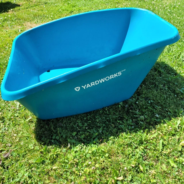 It's made of a strong and durable plastic. Great replacement if your wheelbarrow tub is damaged Also can be used for yard prop or decorative garden Asking $20 let me know. Thank you
