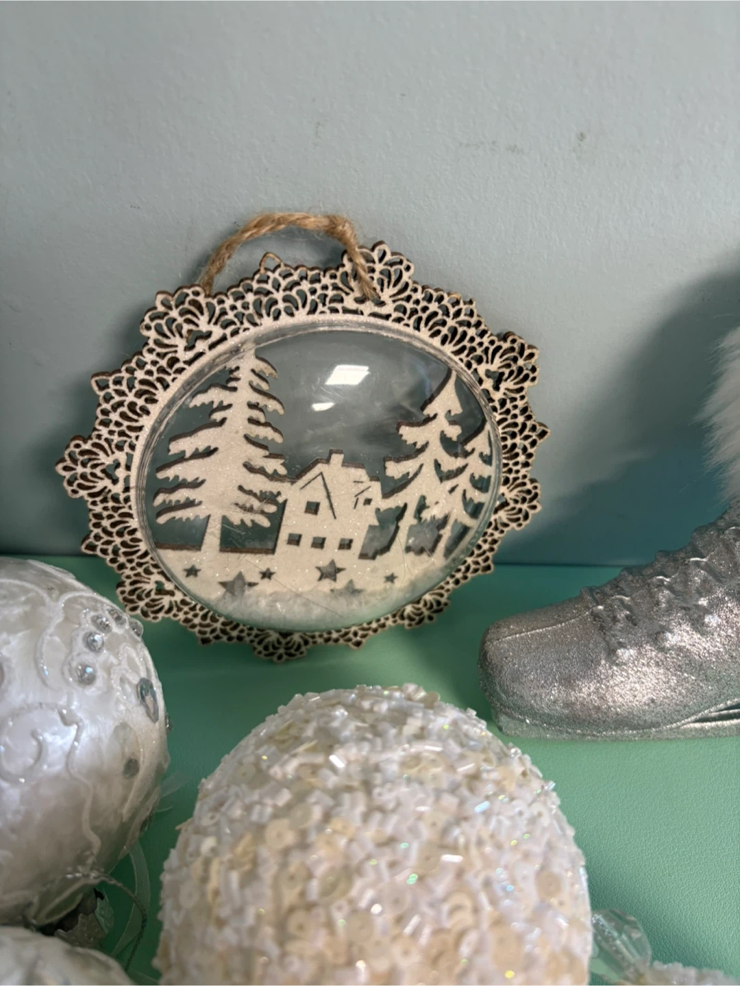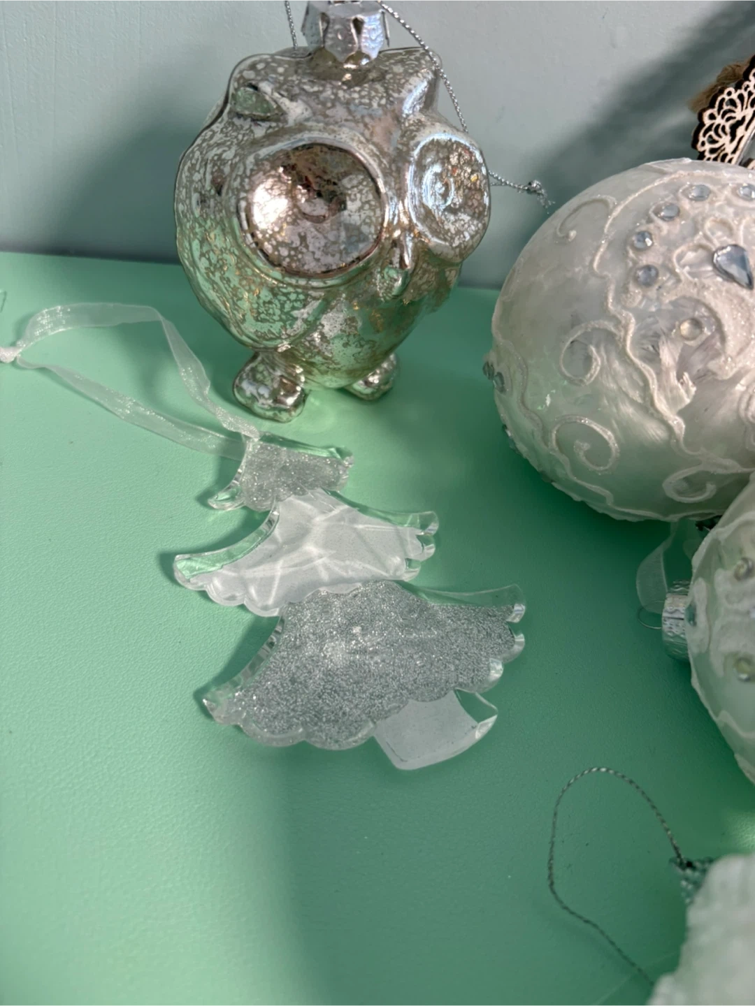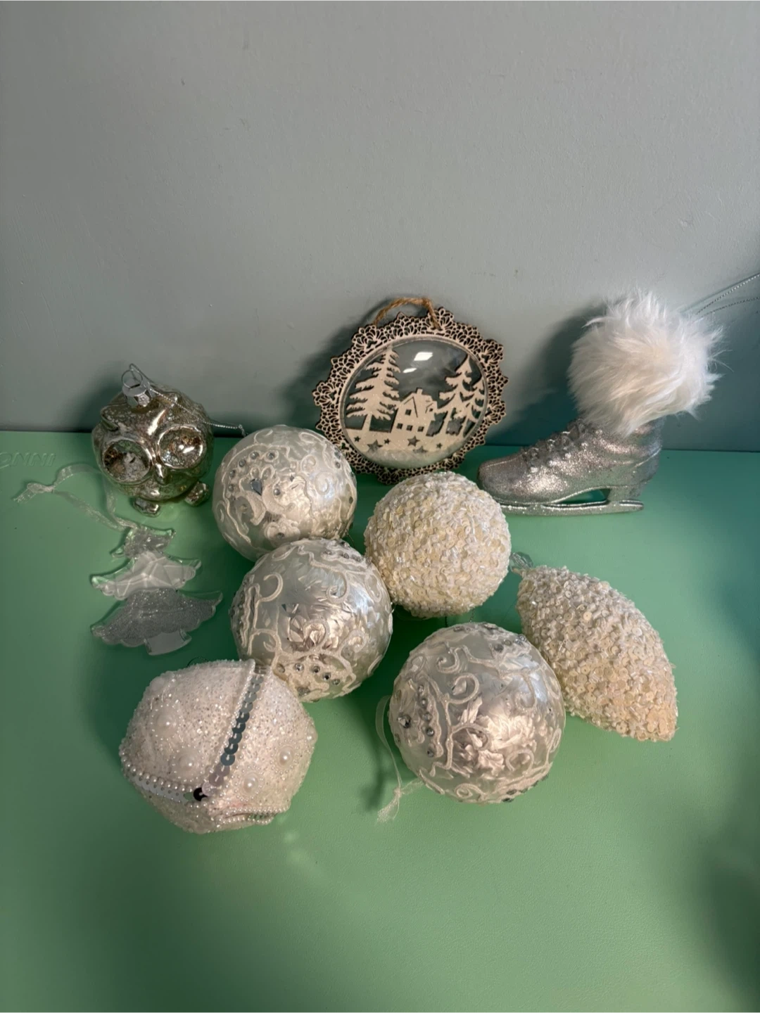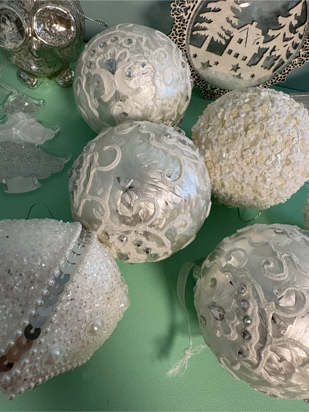 White Assorted Christmas Ornaments lot of 10