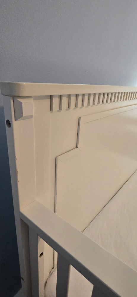 Selling a baby crib in good condition! It's a lovely white colour and would look great in any nursery. Perfect for your little one's sweet dreams
