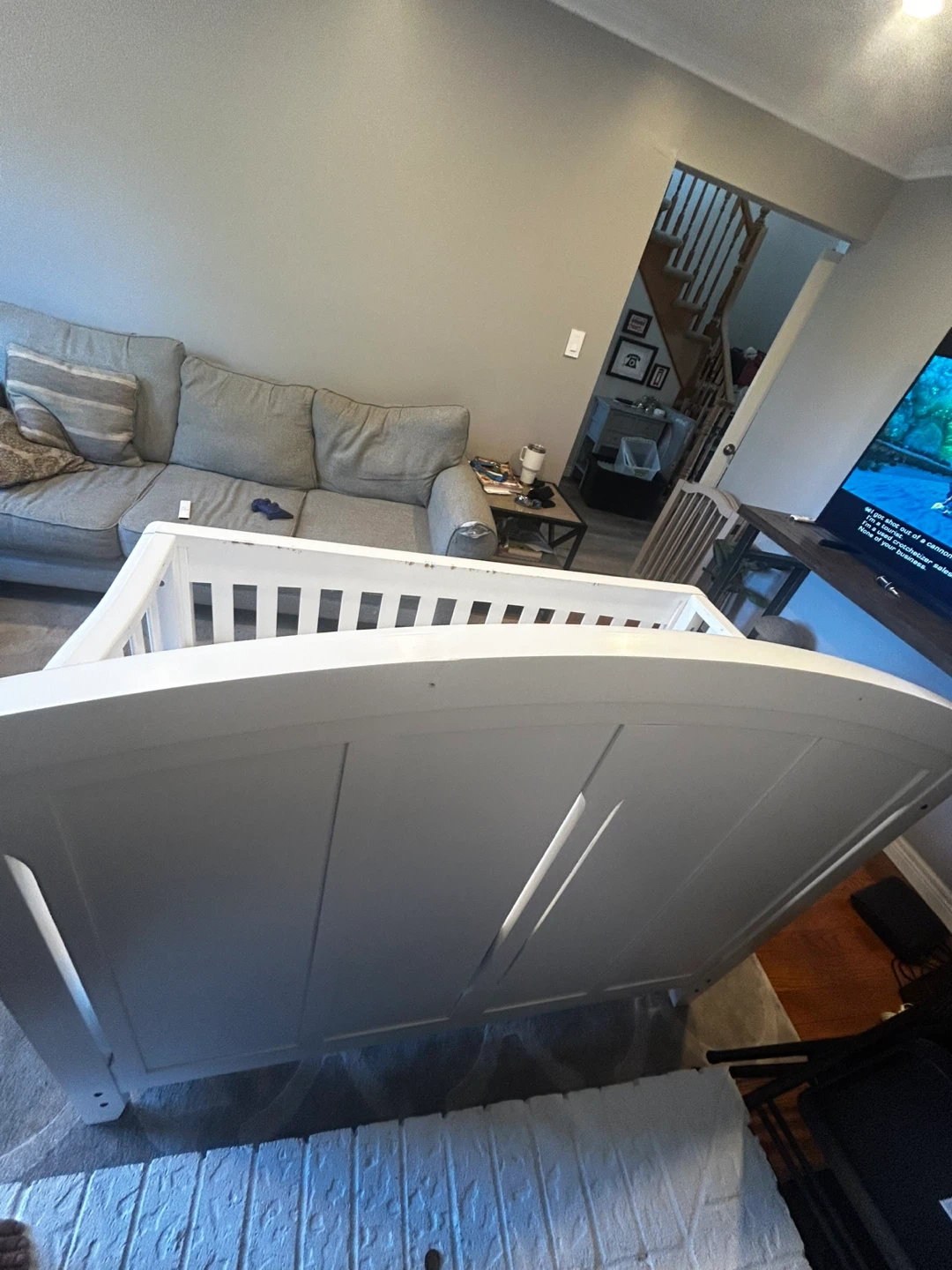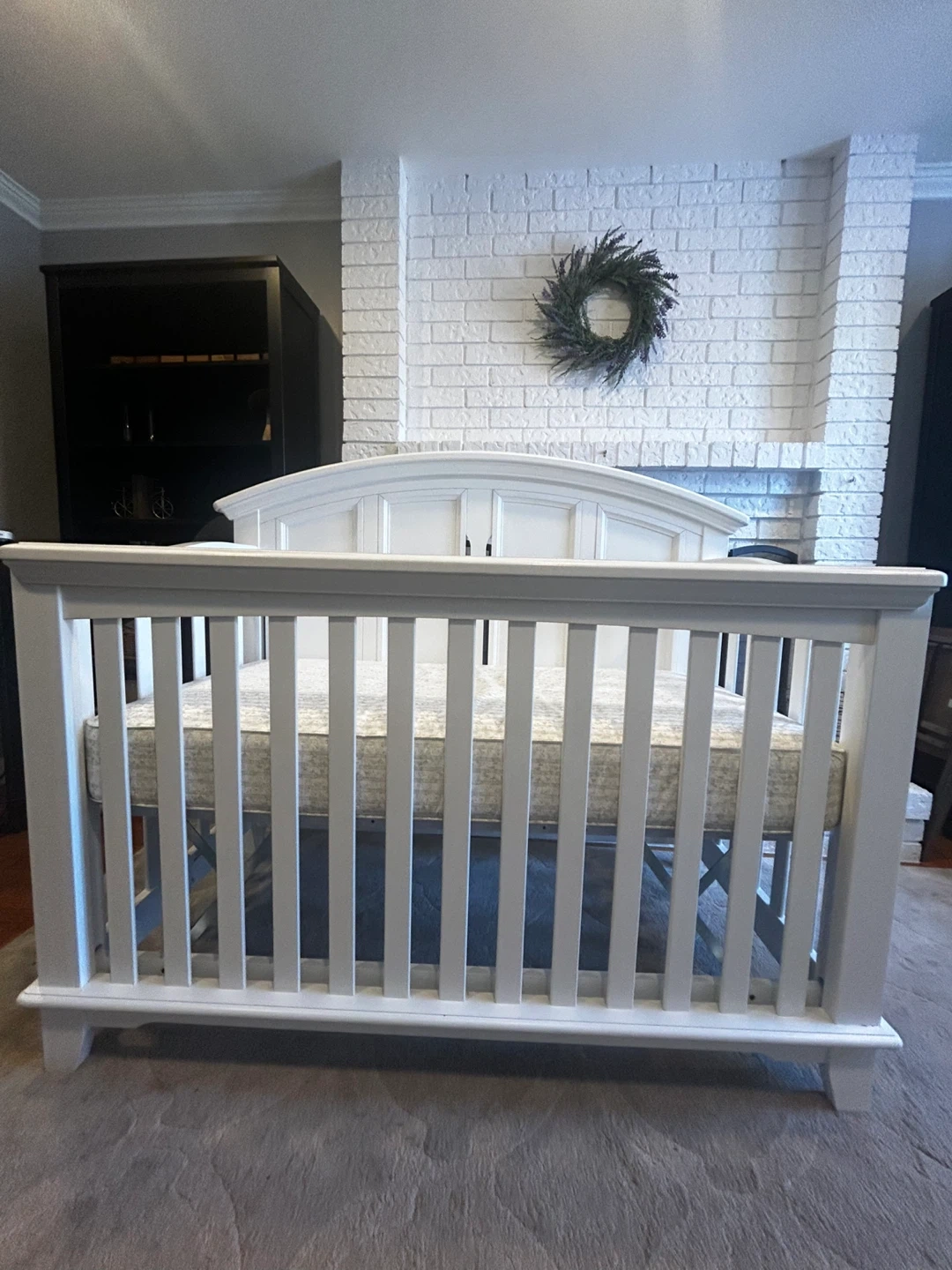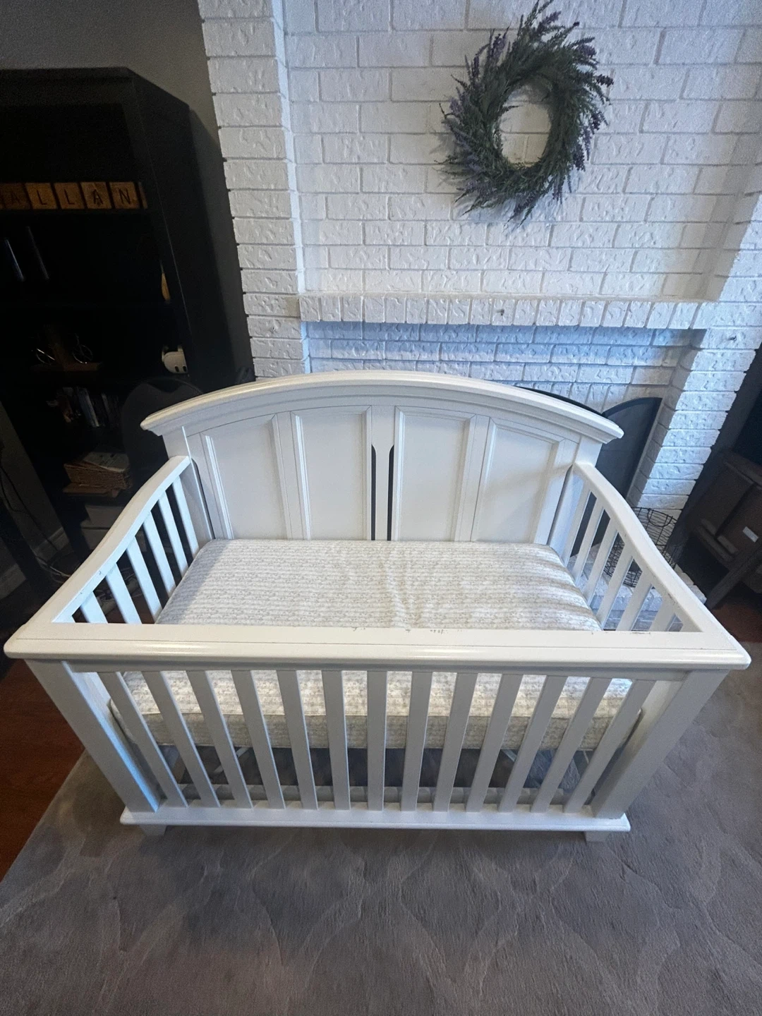 Selling a used white baby crib. It's in great and ready for a new home! Perfect for your little one's nursery