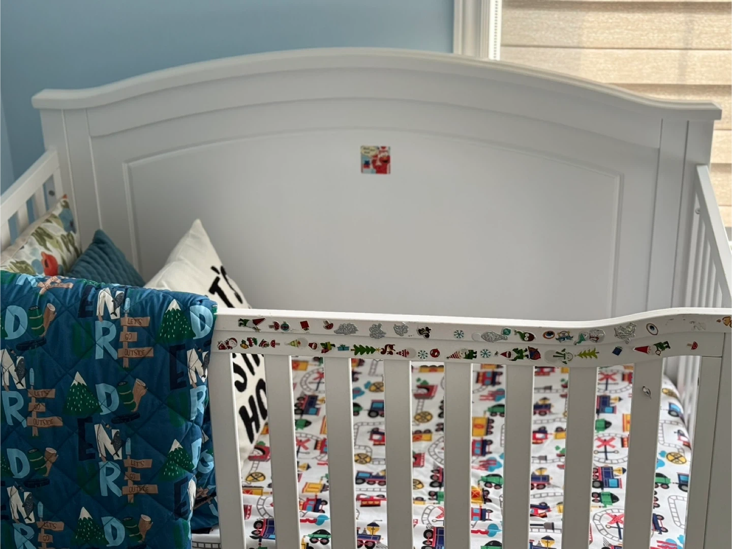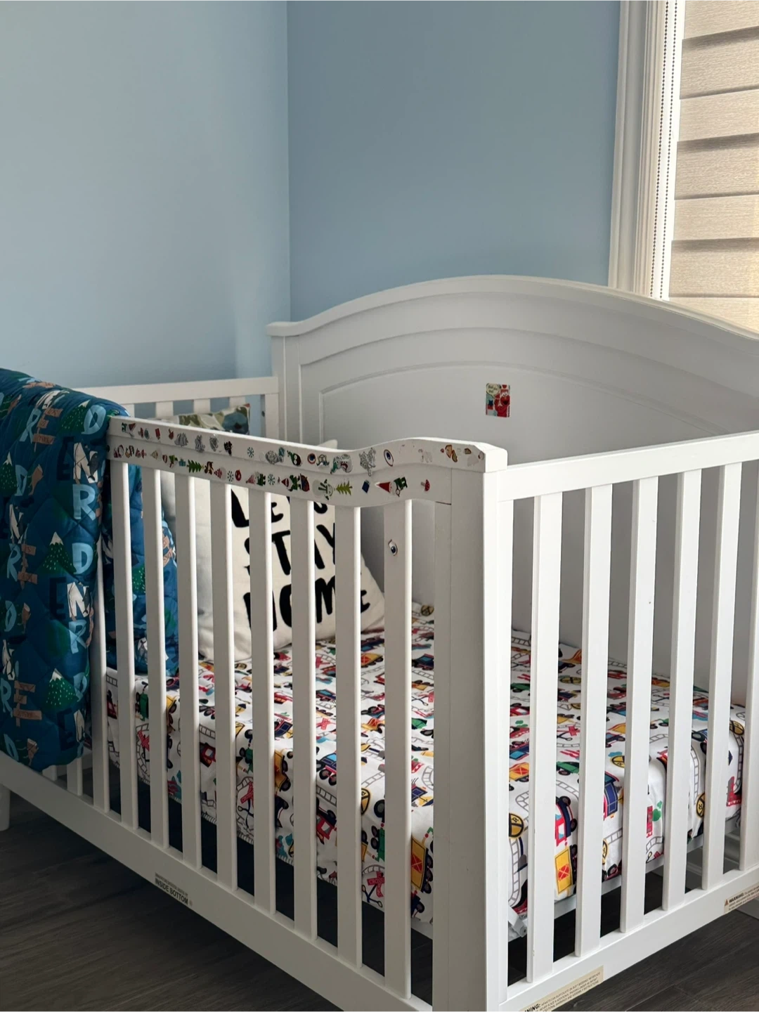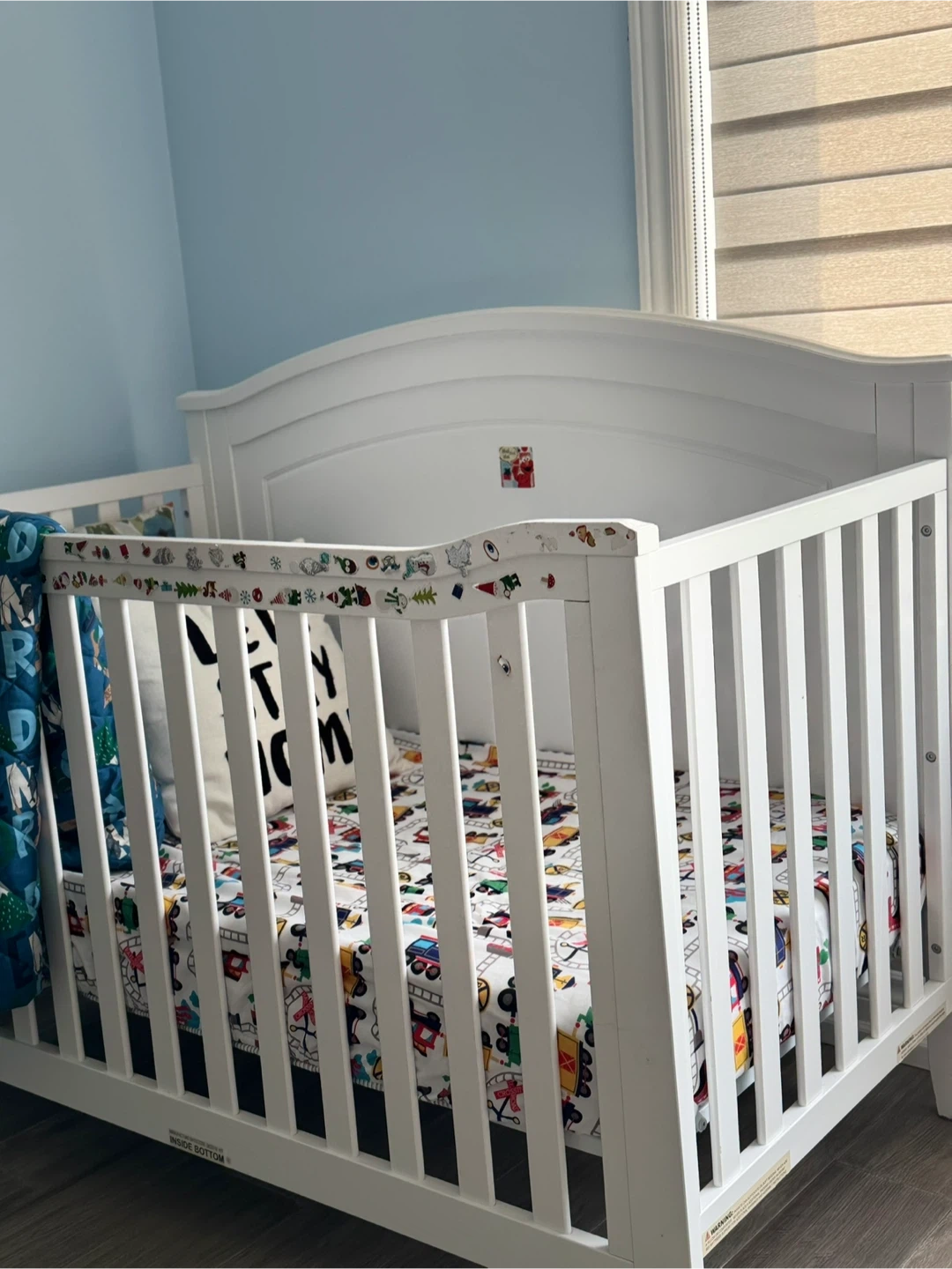 Selling a gently used baby crib in great condition! It comes with a mattress and cute bedding. The crib is white and sturdy, perfect for your little one's nursery. The mattress and bedding are clean and ready to use. A cozy and safe sleeping space for your baby! Length 55inch Width 29inch Height 28inch Beautiful white crib, gently used, comes with mattress and sheet from a smoke free, pet free home. 3 height adjustments possible as per baby/toddler’s transition. Price negotiable for quick pick up!