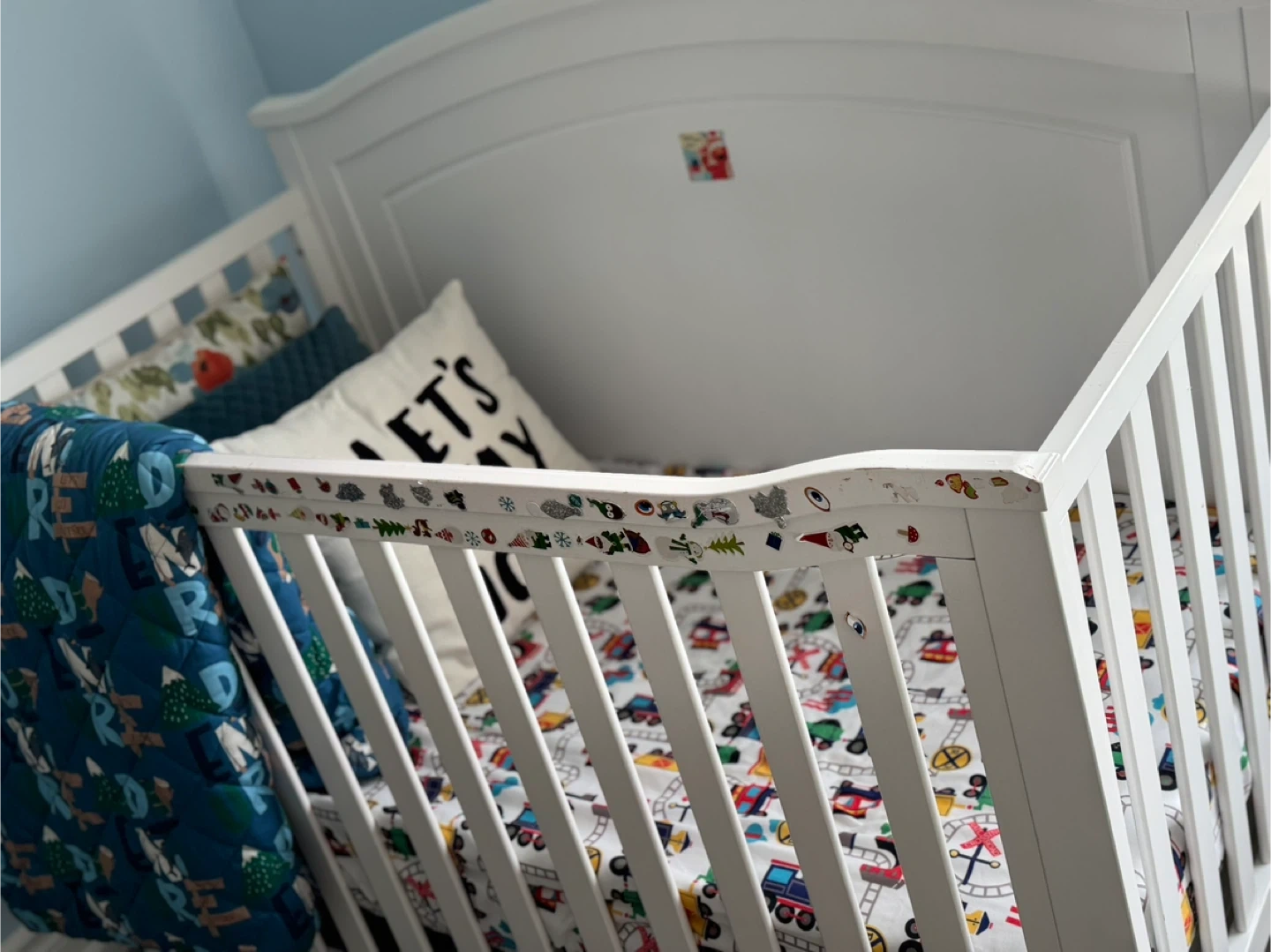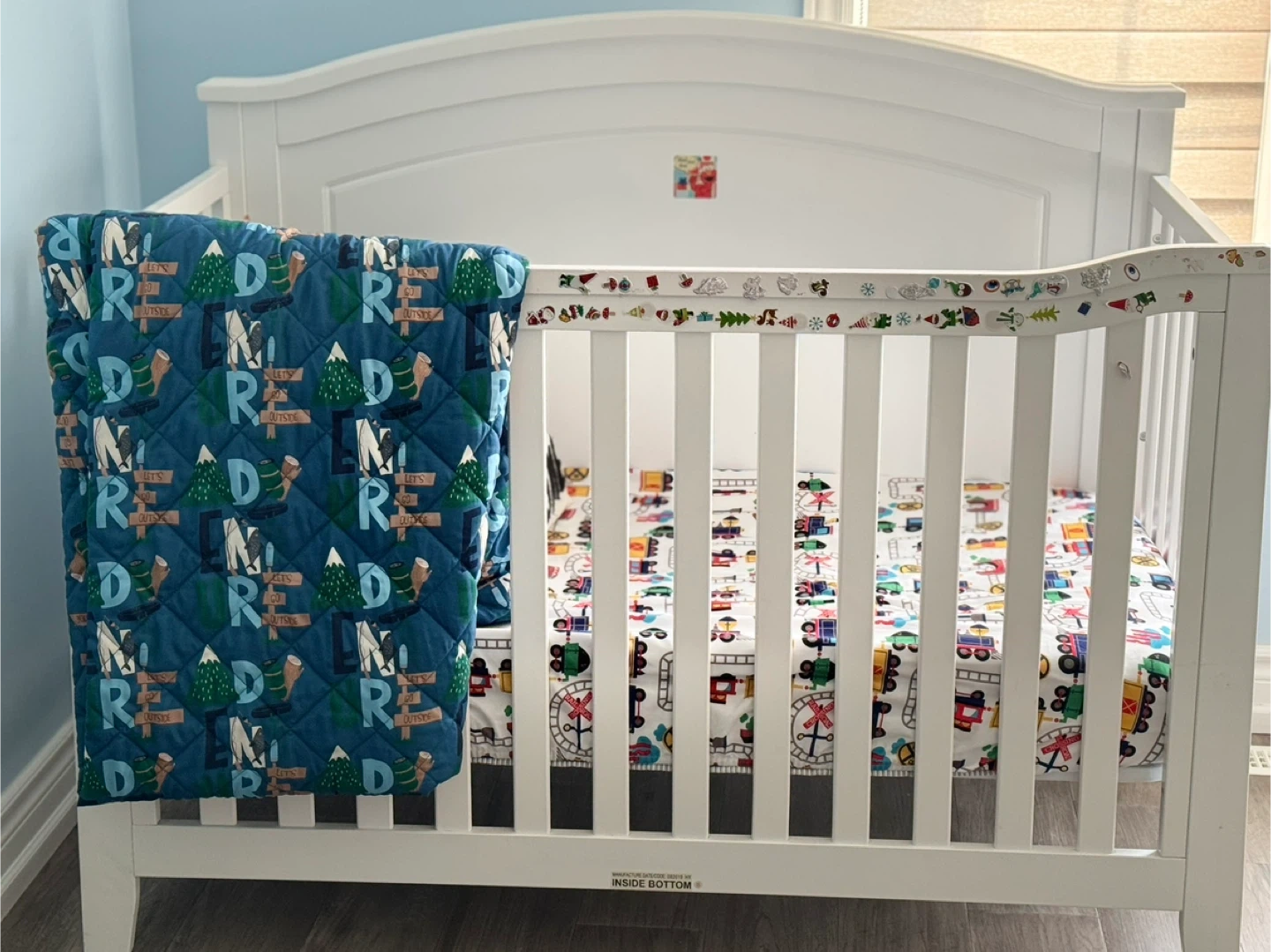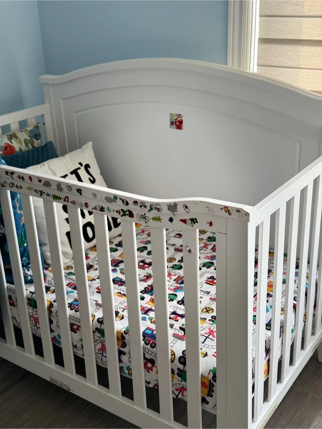 Selling a gently used baby crib in great condition! It comes with a mattress and cute bedding. The crib is white and sturdy, perfect for your little one's nursery. The mattress and bedding are clean and ready to use. A cozy and safe sleeping space for your baby! Length 55inch Width 29inch Height 28inch Beautiful white crib, gently used, comes with mattress and sheet from a smoke free, pet free home. 3 height adjustments possible as per baby/toddler’s transition. Price negotiable for quick pick up!