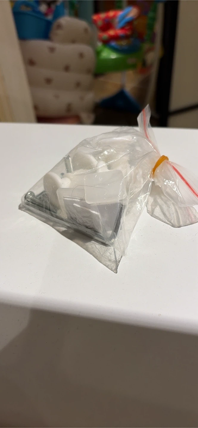 Selling a white bathroom shelf unit! It's in great shape and ready to add some extra storage to your bathroom. The unit includes all the necessary components for assembly, as shown in the bag of parts. Perfect for organizing towels, toiletries, and other bathroom essentials Never been used