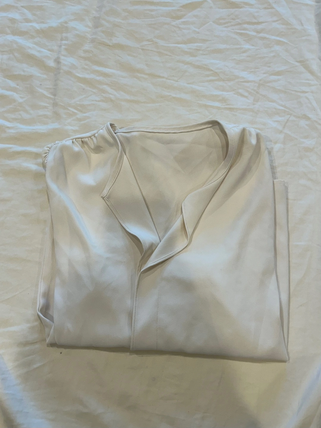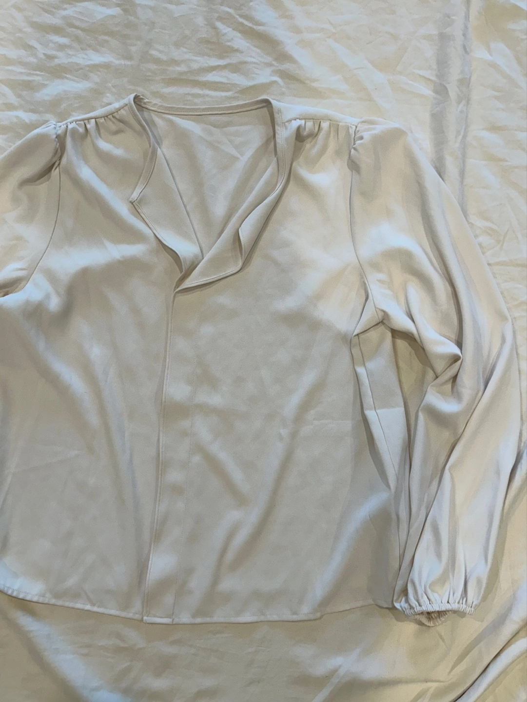 Cream-colored long-sleeve blouse with a V-neck. Perfect for office casual or formal occasions!!