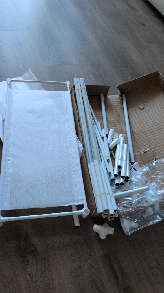 Selling a white coat rack with shoe shelf stand. It's in great condition and comes disassembled in its original box. Perfect for keeping your entryway organized! Brand New but selling because it's flimsy. assembly instructions included