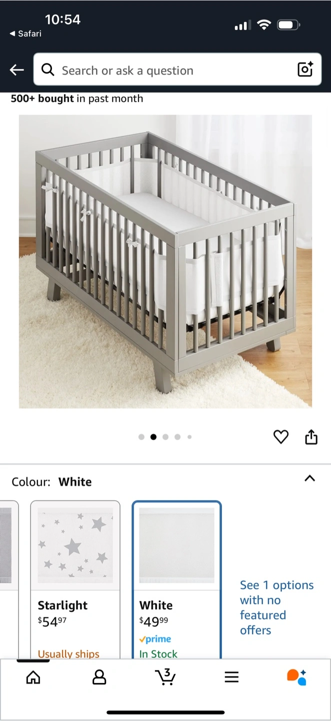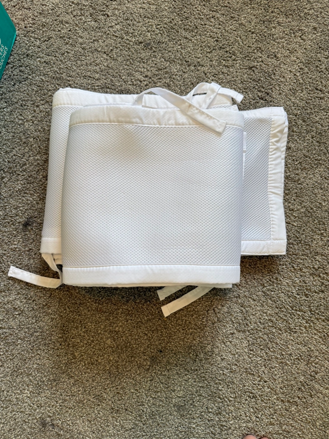 Crib mesh bumpers. White breathable mesh fabric. Attaches with ties. Suitable for standard cribs.