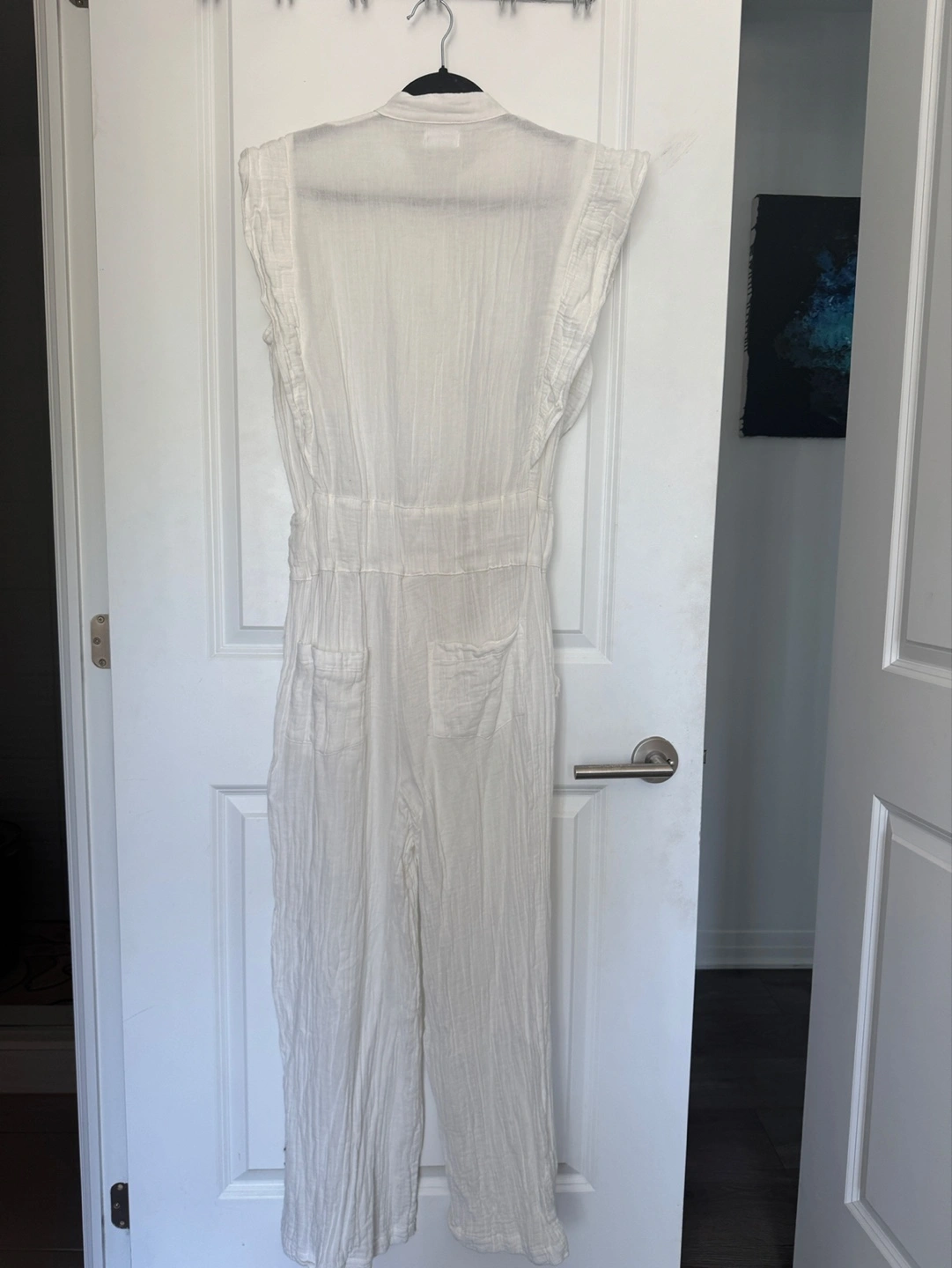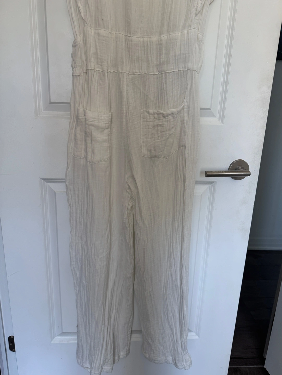 White Crinkled 100% Cotton Jumpsuit - Size Medium
