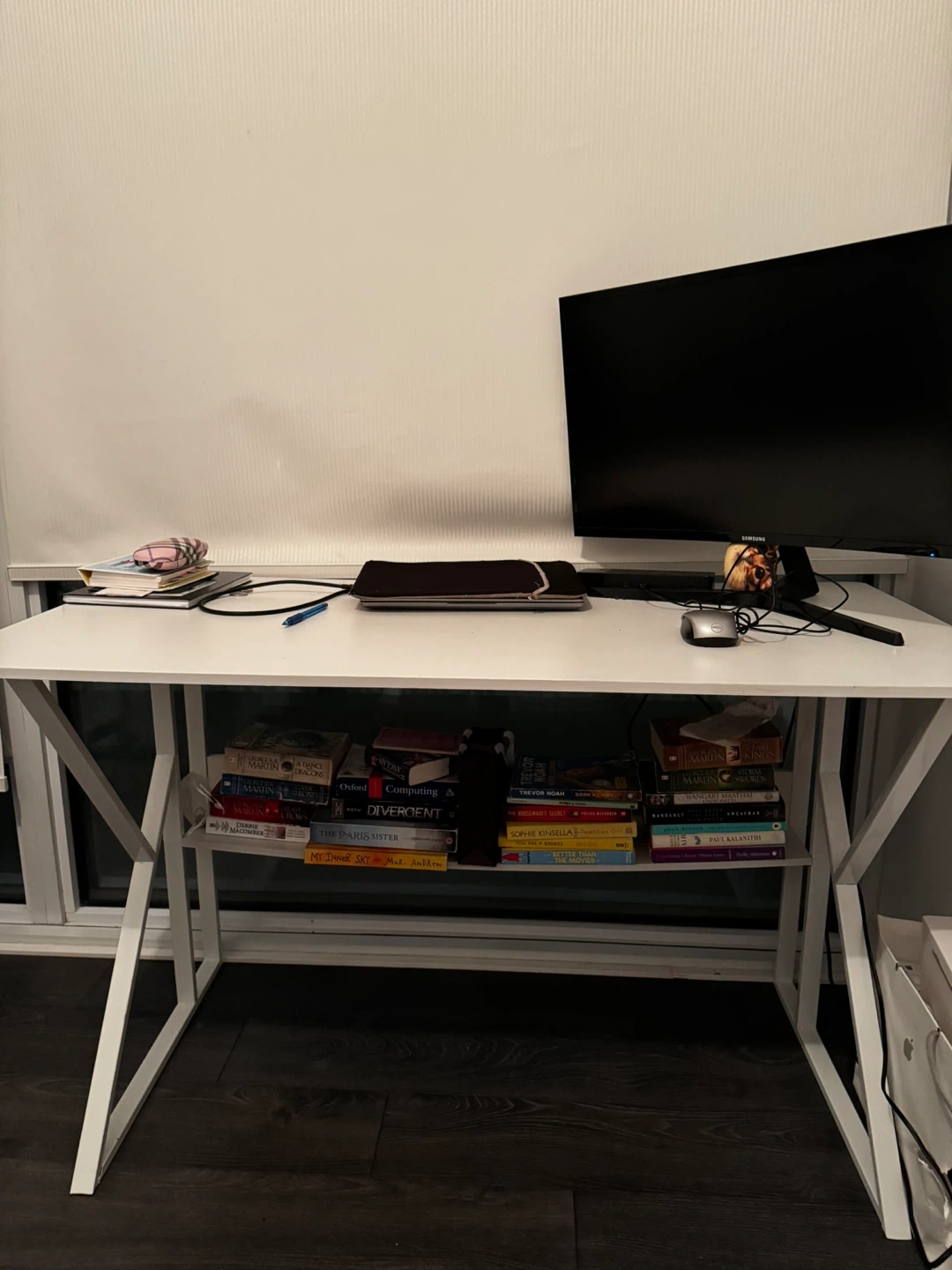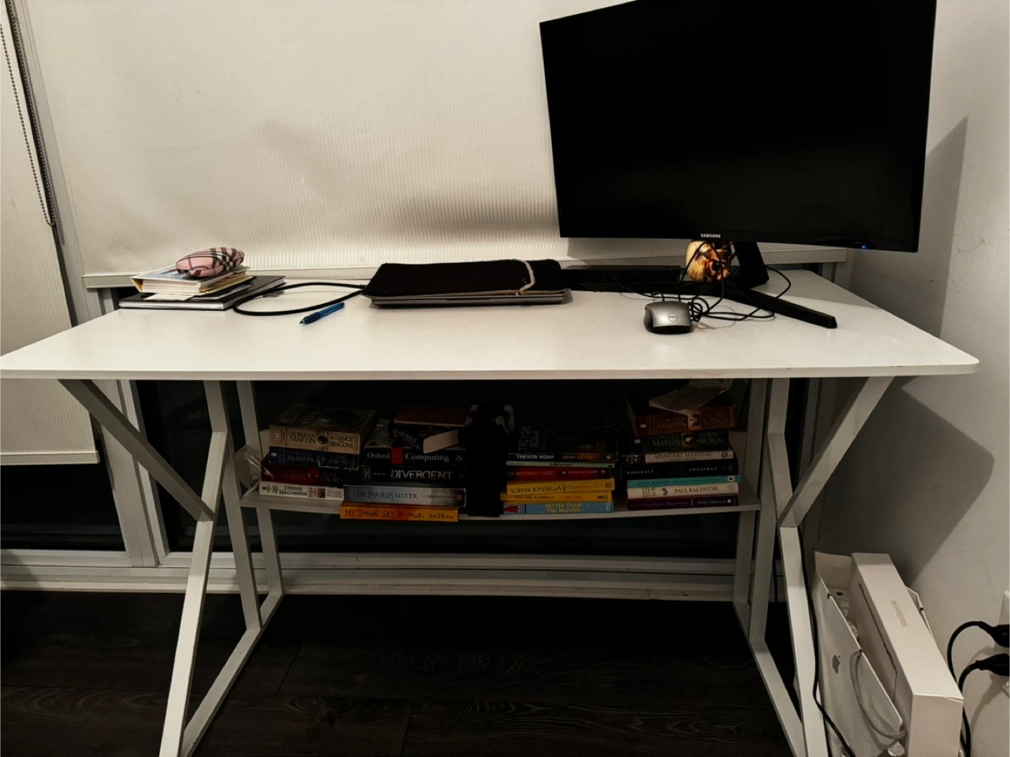 Selling a white desk that comes with a built-in bookshelf! It's perfect for a home office or study space. The desk is in great condition and ready for a new home. The bookshelf offers extra storage for books or other items.