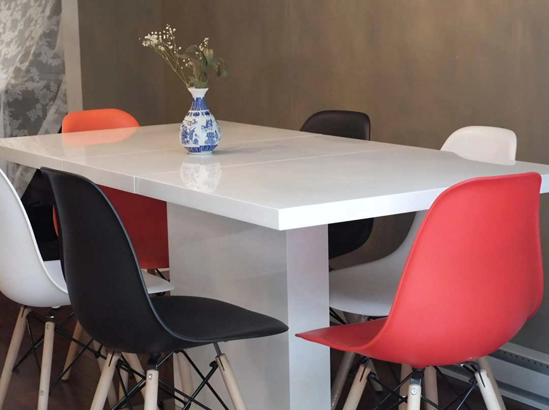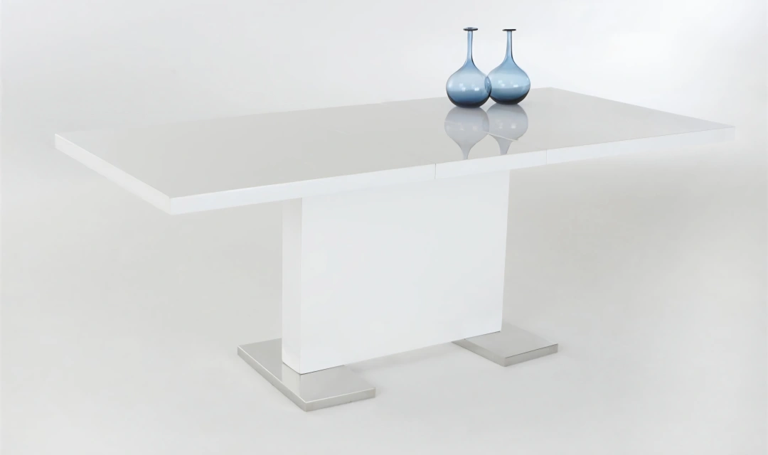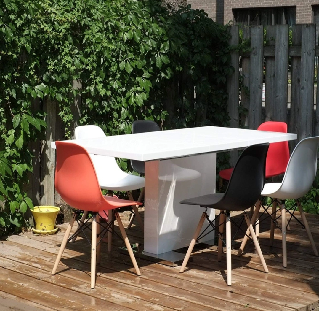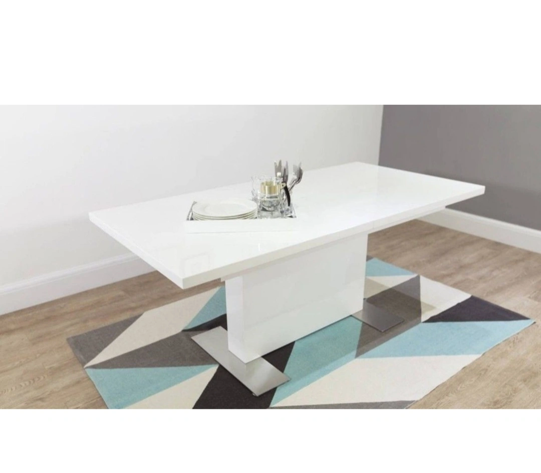 Selling a modern white dining table! It features a sleek design perfect for both everyday meals and hosting. The table has a sturdy base and a glossy white finish that will brighten up any dining space. *Expandable piece not available - broke during the move.