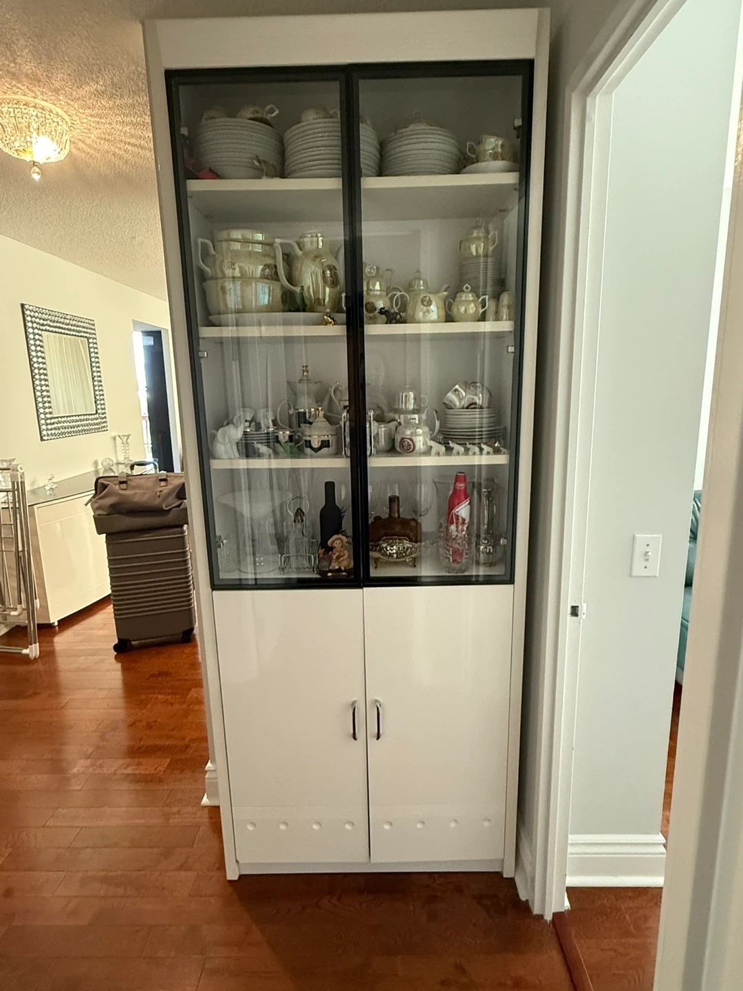 Selling a white display cabinet. It has glass doors on the top half and solid doors on the bottom half. Great for displaying your favourite items!