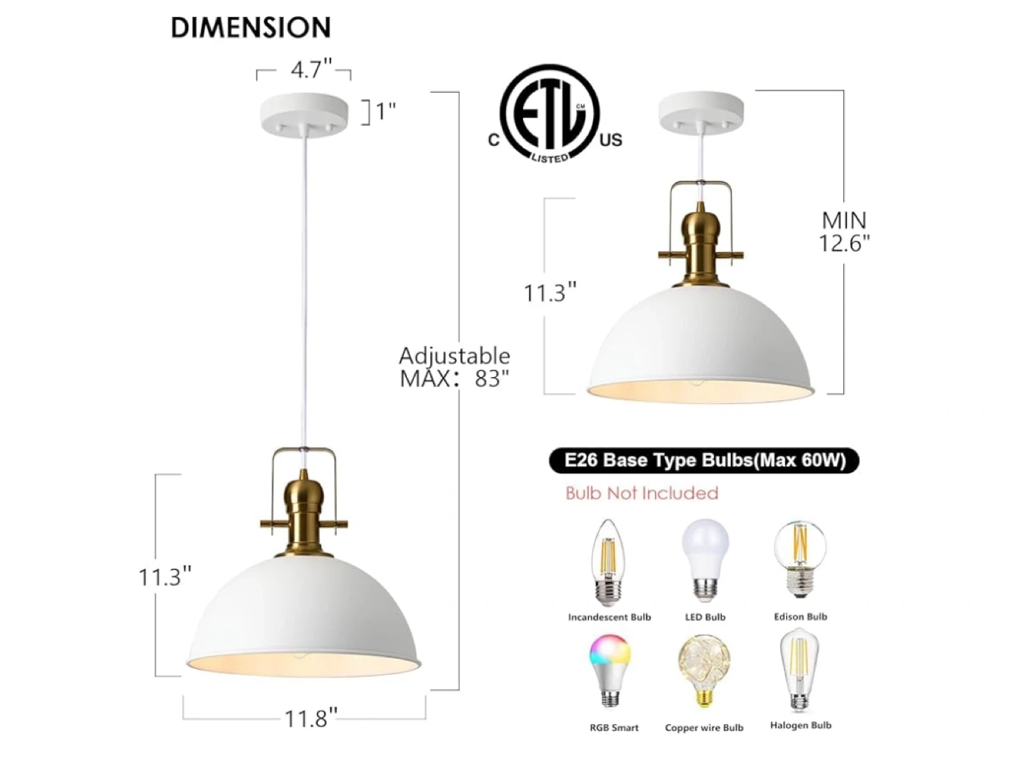 White Dome Pendant Lighting - 3 Pack