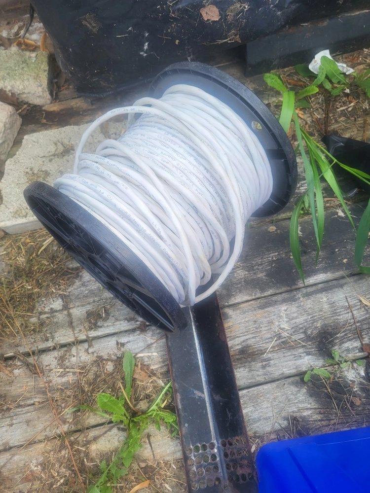Selling a spool of white electrical wire. It appears to be in good condition and ready for your next electrical project! Please see photos for details