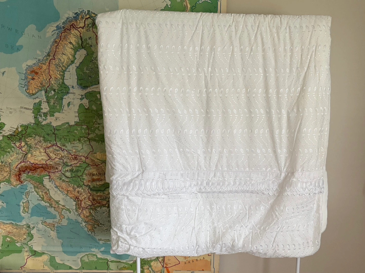 White embroidered duvet cover & polyester comforter