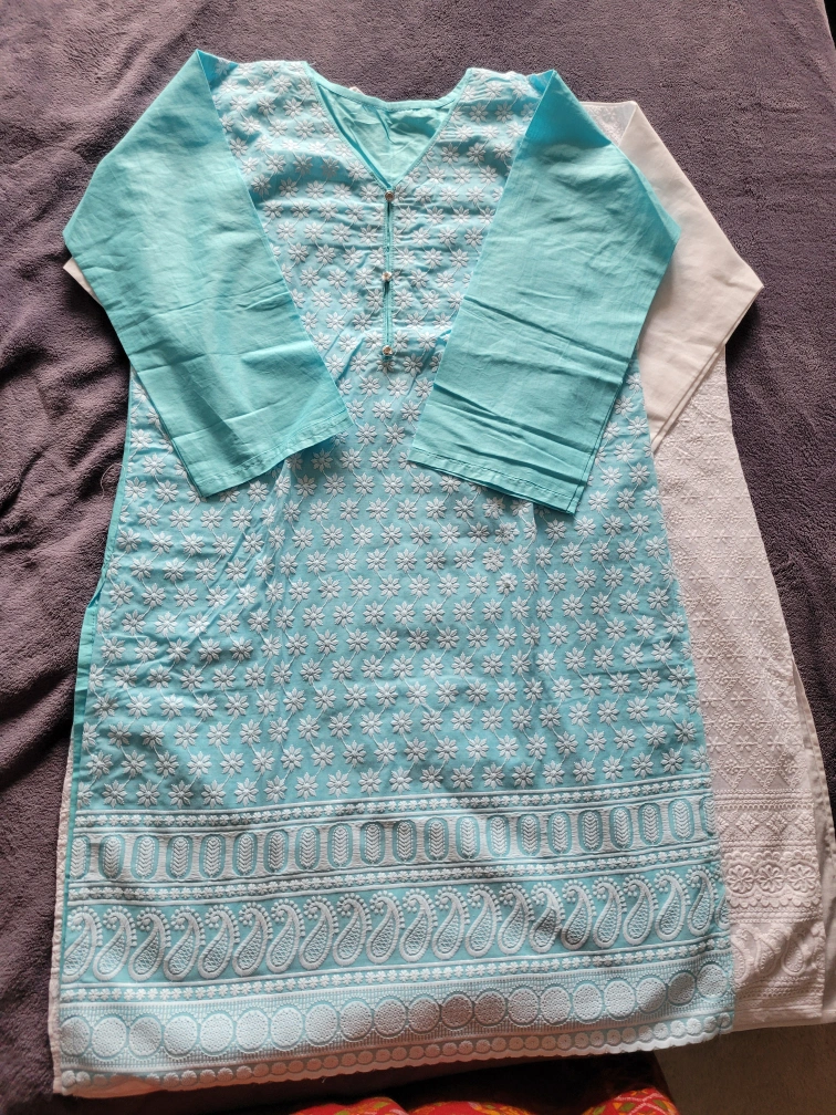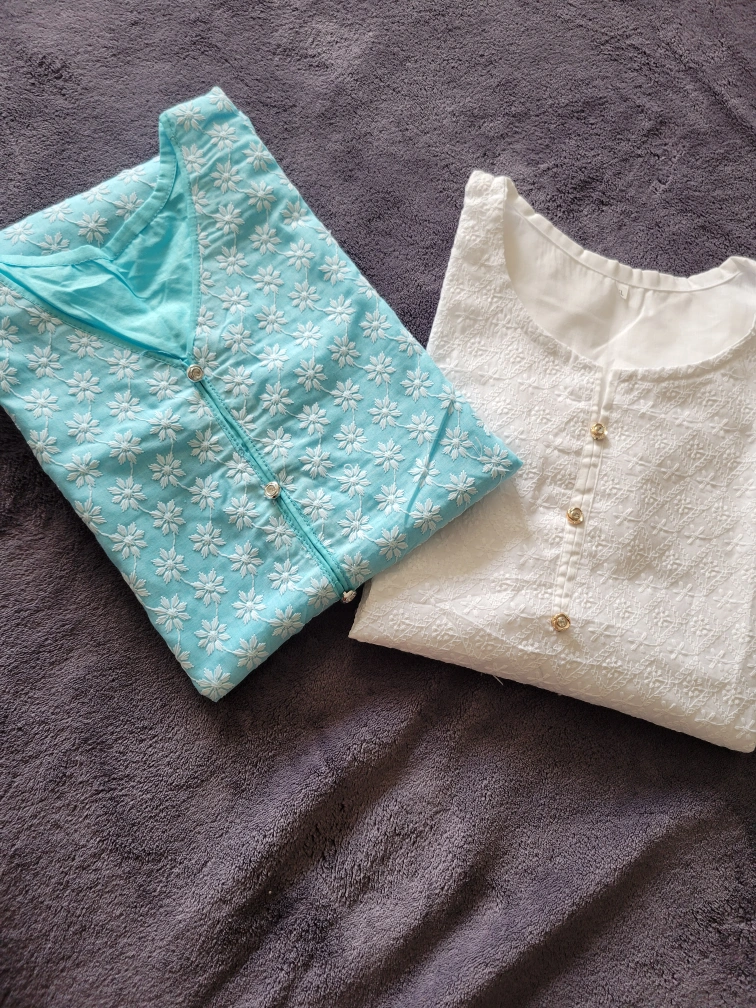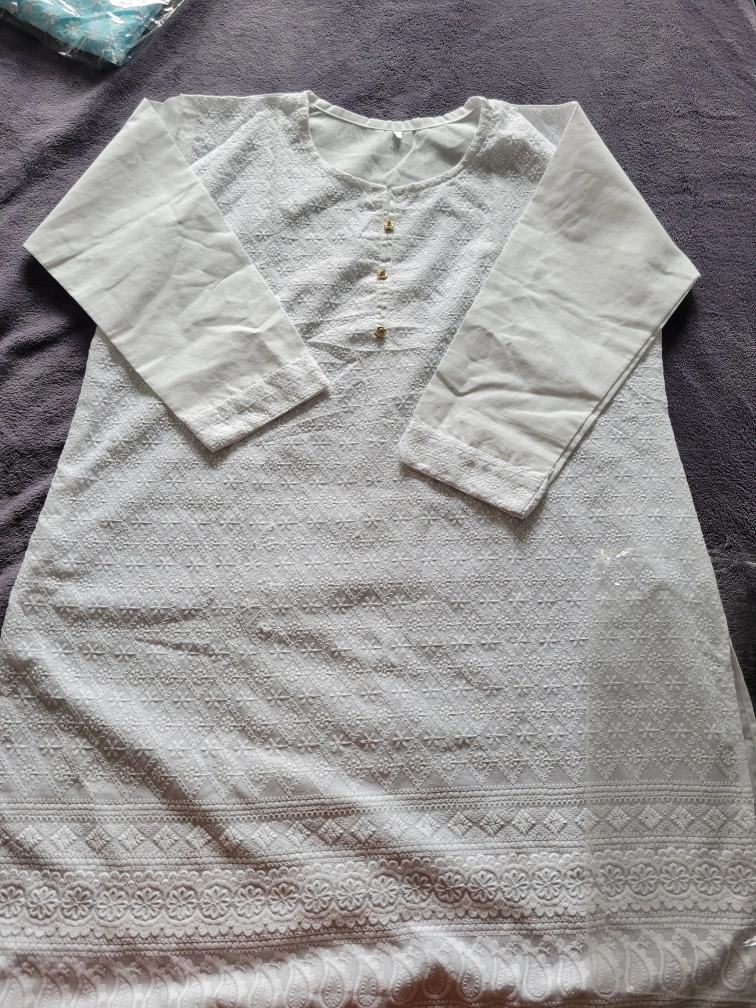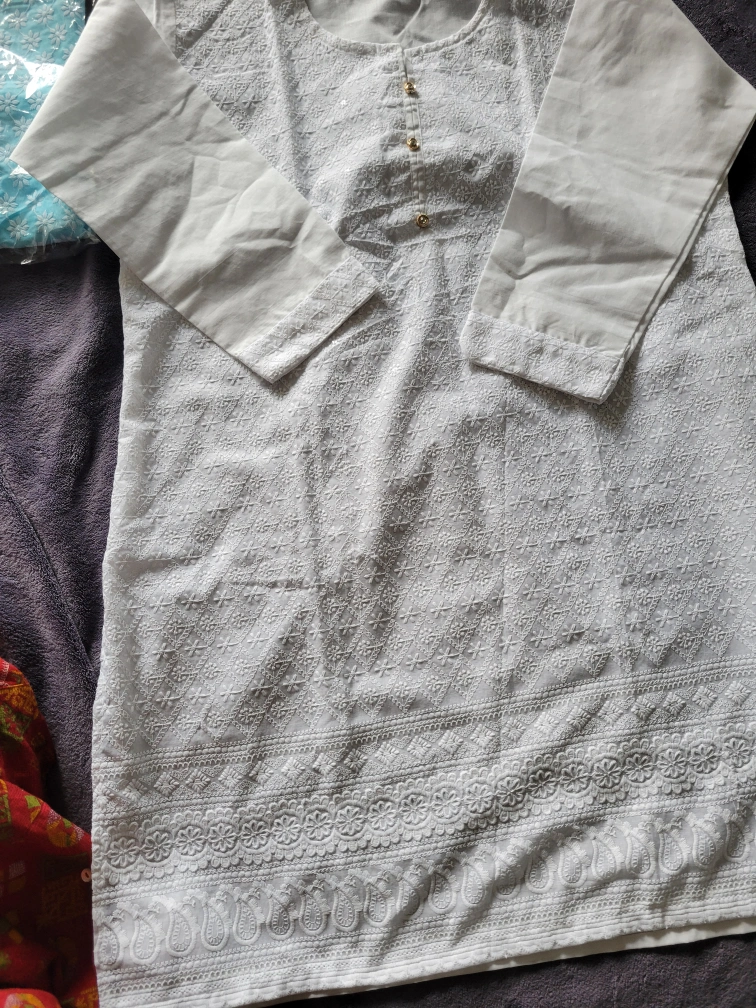 I'm selling a lovely white kurti with beautiful embroidery. It's in great condition and would be a wonderful addition to your wardrobe! The material feels soft and comfortable, perfect for everyday wear or special occasions