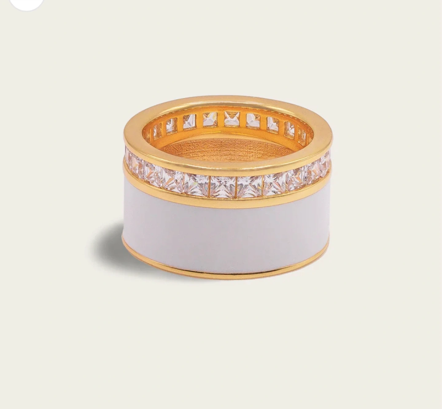 Selling a white Enamel Bold P Ring. It's in new and ready for a new home! The ring features a beautiful white enamel and crystals set in a gold plated sterling silver band. It is Canadian designer ring. Retail price was $280+