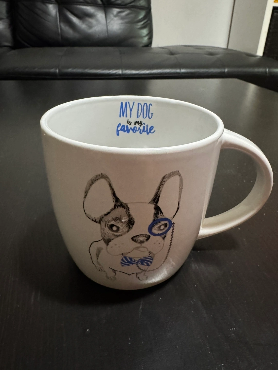 White mug with an English bulldog drawing with the slogan “My dog is my favourite” on the inside of the mug. Smoke-free, Pest-free, and Pet free home. Cash and asap pickup only, please. Stockyards (Keele/St. Clair) Area