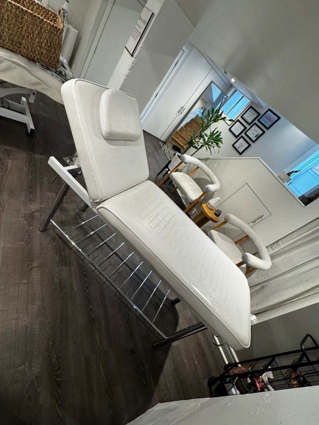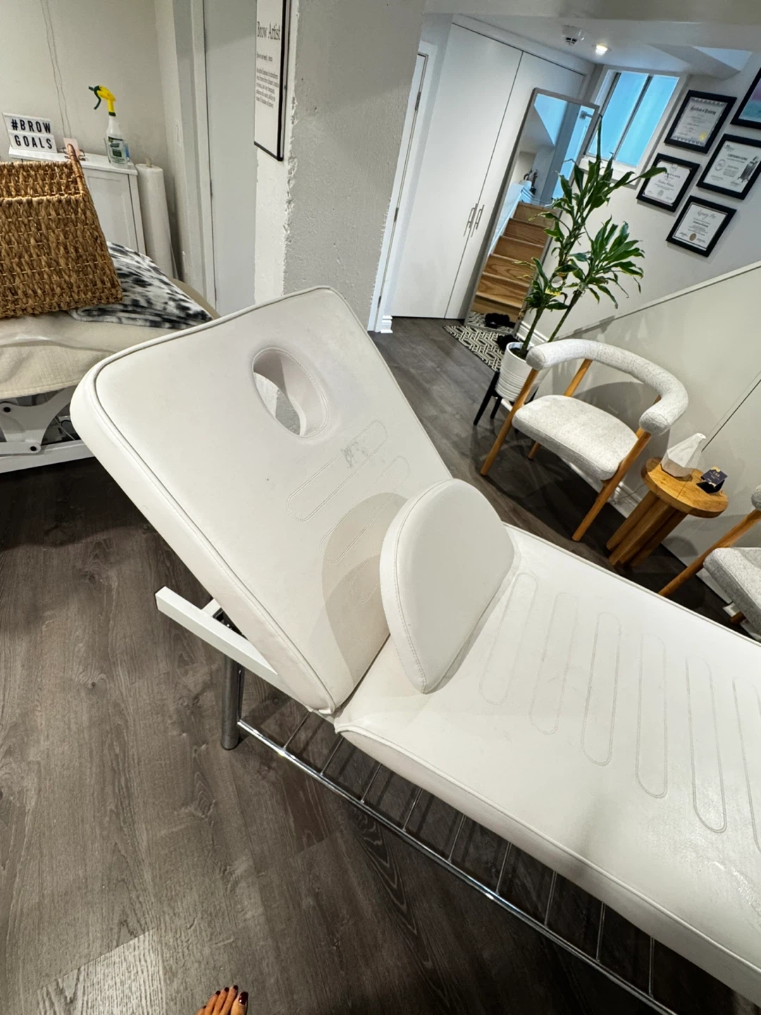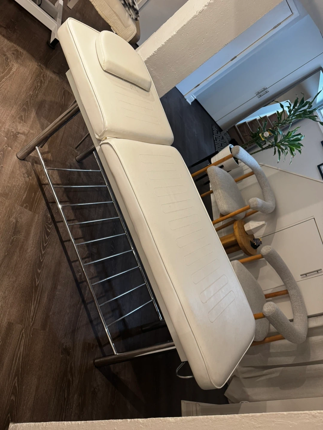Selling a white facial bed. 2yrs old, It's in great condition and ready for your home spa or professional studio! It's a comfortable and stylish addition to any space Pick up only