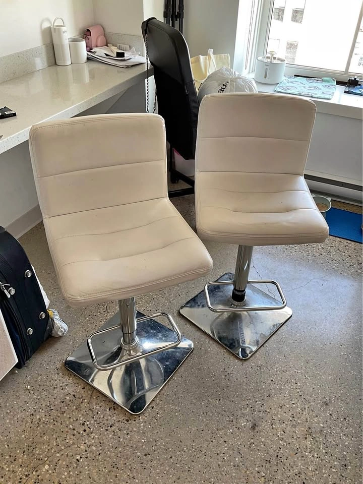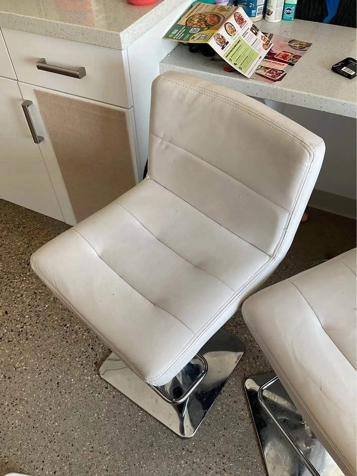 White bar stools for sale, with some minor wear and tear from a few years of use (shown in video). Still in very good shape, with lots of life left! Selling them as a pair for $80, originally purchased for $175. Pickup downtown Winnipeg.