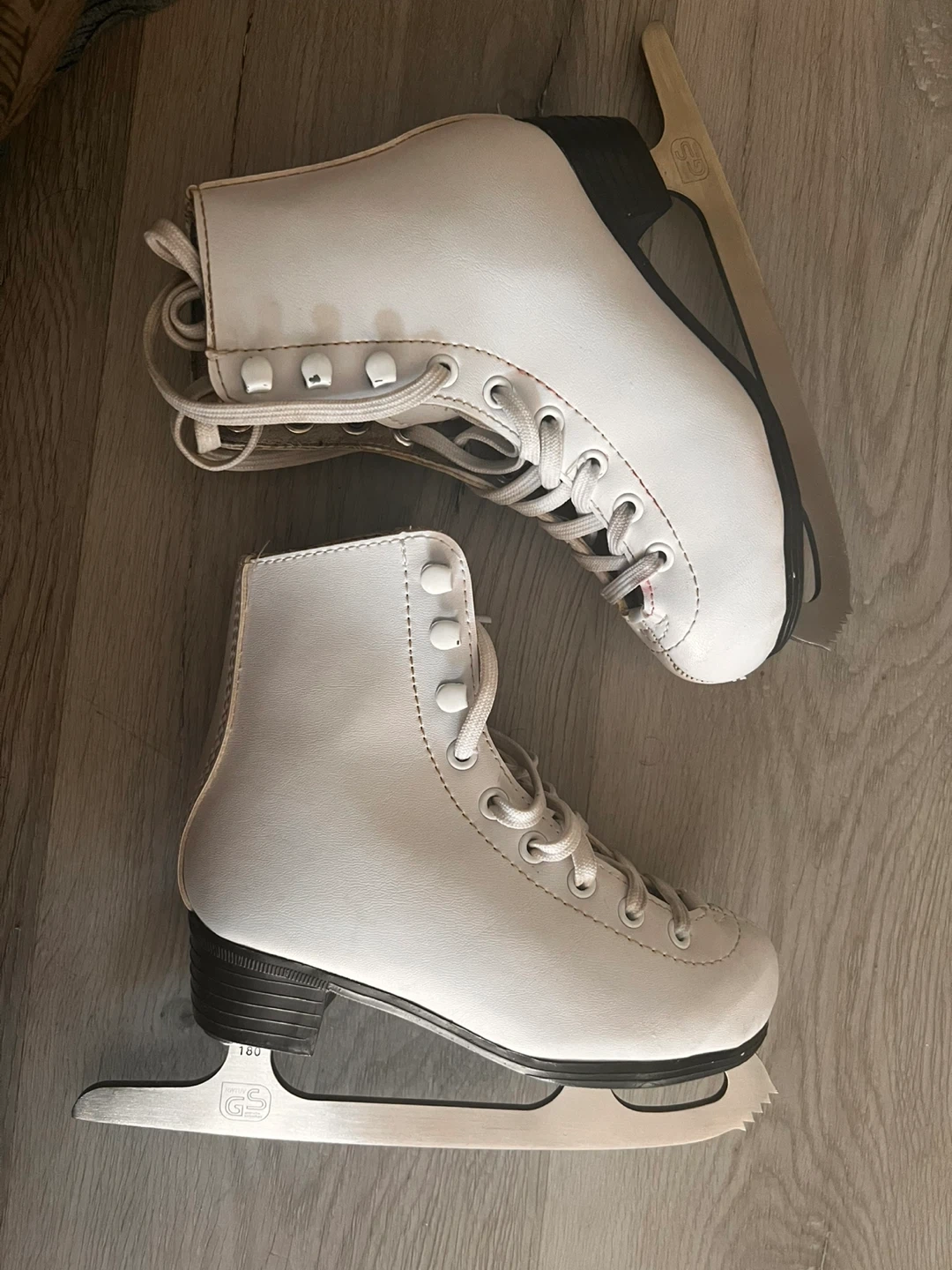 Selling a pair of white figure skates in size Y11. Suitable for kids 2 to 6 years old. They're in good condition and ready for the rink! Perfect for beginners or recreational skaters. Get ready to glide!