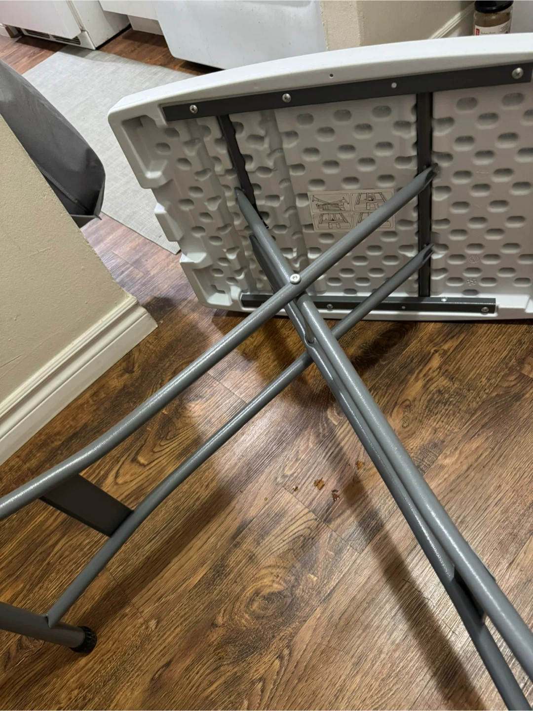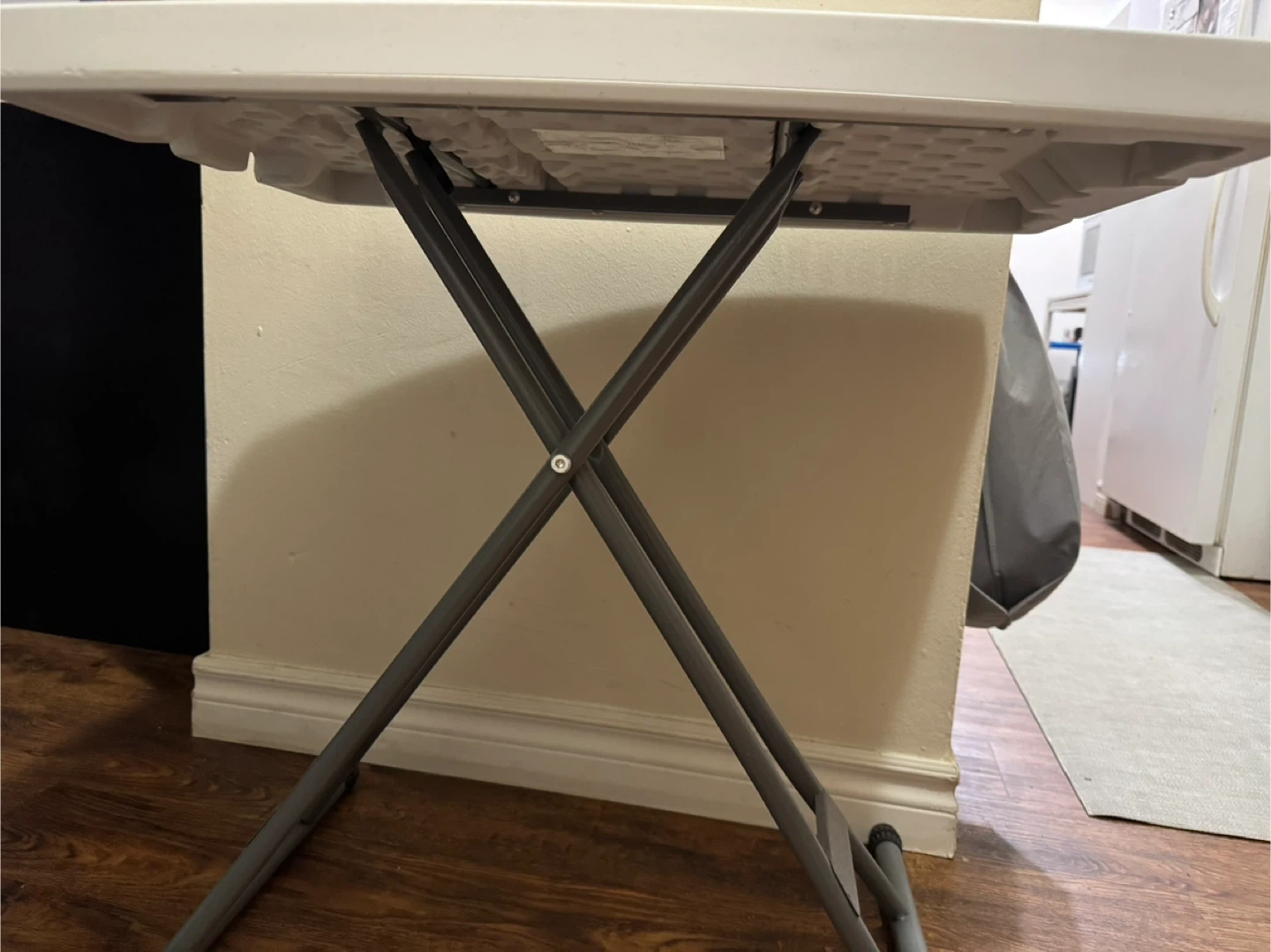 Selling a handy white folding table! It's perfect for small spaces and easy to store when not in use. The table is in great condition and ready for a new home Height adjustable
