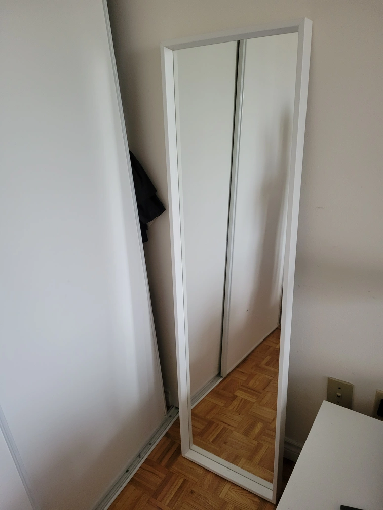 Selling a full-length mirror with a simple white frame! It's in great shape and ready to brighten up any room. A great addition to your home decor