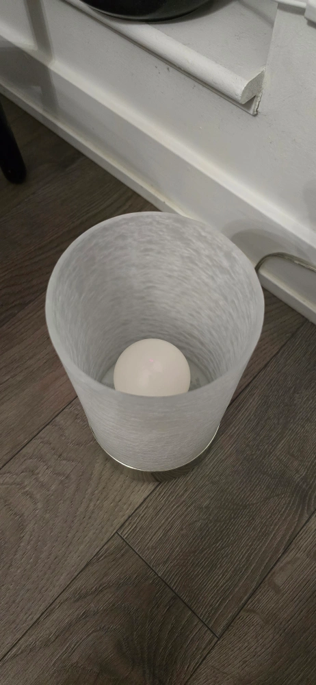 Selling a white glass touch table lamp! It has a textured glass shade and a metal base. Perfect for adding a soft glow to any room