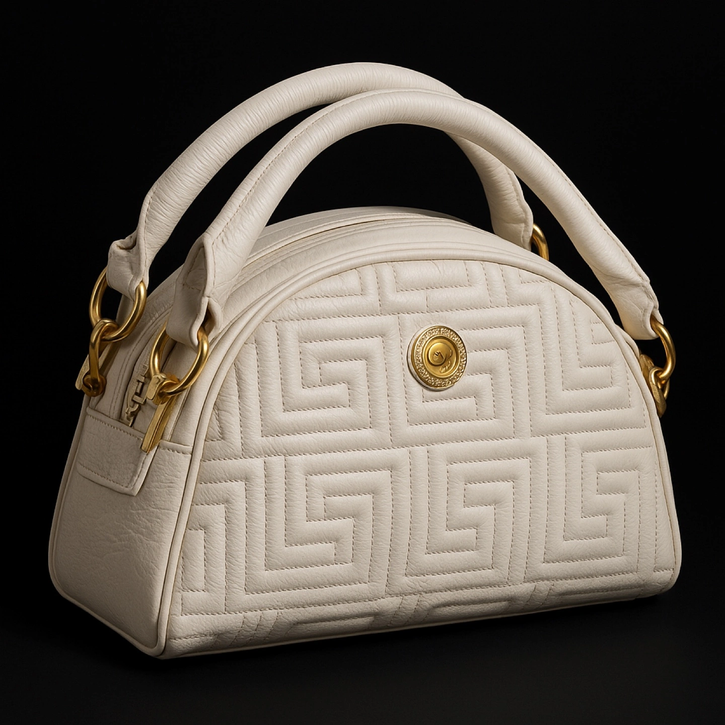 Selling a stylish handbag in white leather. It features a unique geometric pattern and gold-tone hardware. Perfect for adding a touch of luxury to your outfit!