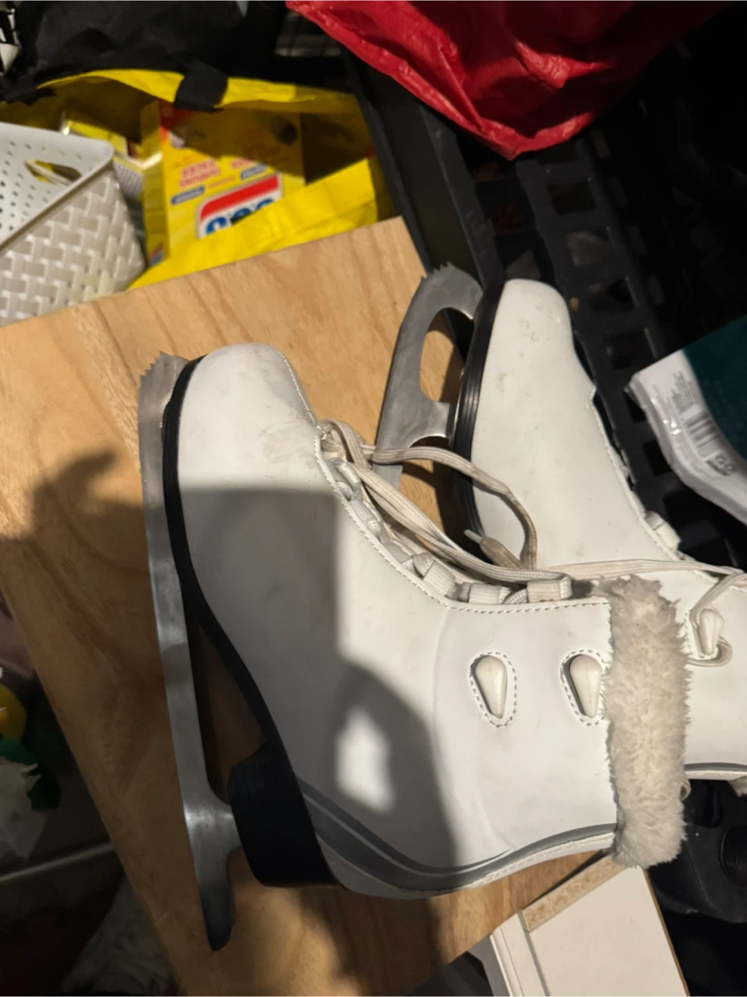 Selling a pair of white ice skates. They appear to be in good condition and are siz5