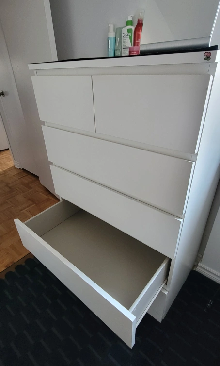 *** Moving Sale *** Selling a white IKEA Maml Chest of Drawers. It's in great condition and has lots of space for storage. Perfect for organizing your clothes or other items. The dresser has a sleek and simple design that will fit well in any room I have a matching 6 Drawer Malm Dresser that would pair perfectly well with this. See my other listings for more items. * Cash payment preferred. * Pick up at 100 Wellesley St. E - Tue, Thur & Weekends - All day - Mon, Wed, Fri - Evening as from 6:30 pm