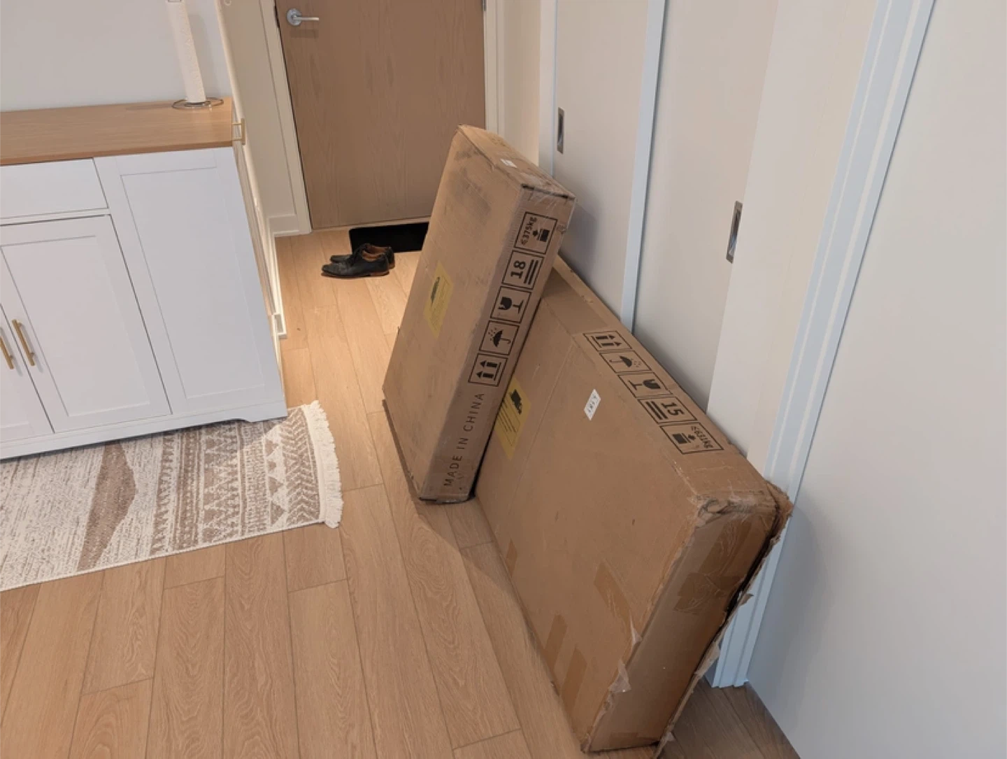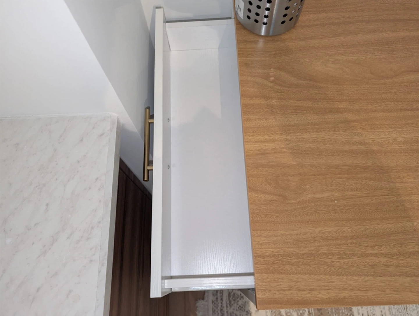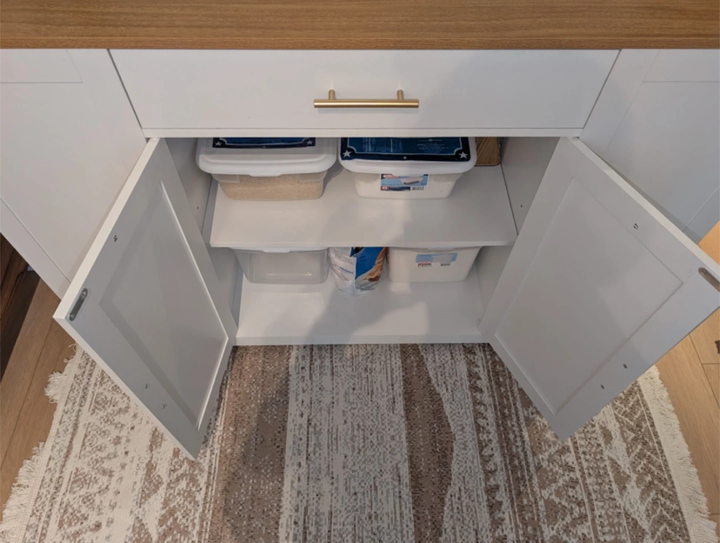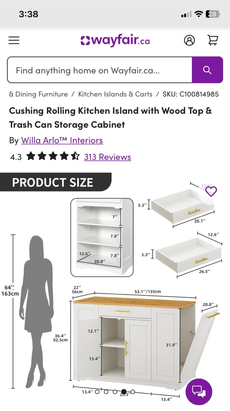 Selling a kitchen island with a white base and a wooden top. It features drawers and cabinet space for storage. It's in great condition and would be a lovely addition to any kitchen! Completely brand new-still in its original box. Unopened.