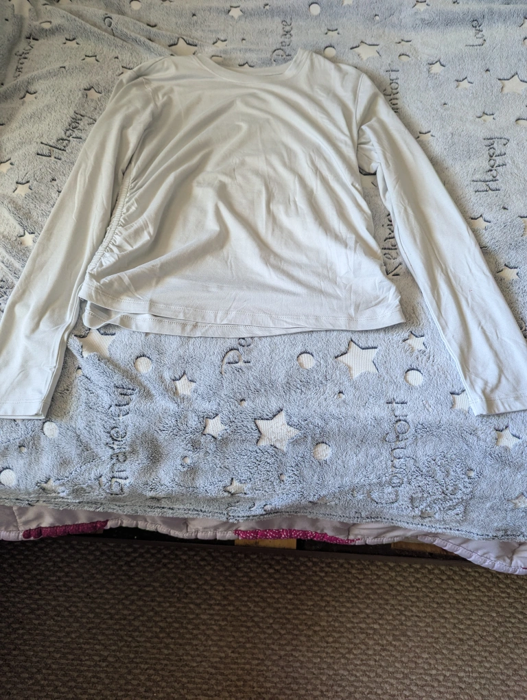 white long sleeve top, perfect for layering or wearing on its own! It's in great condition and ready for a new home