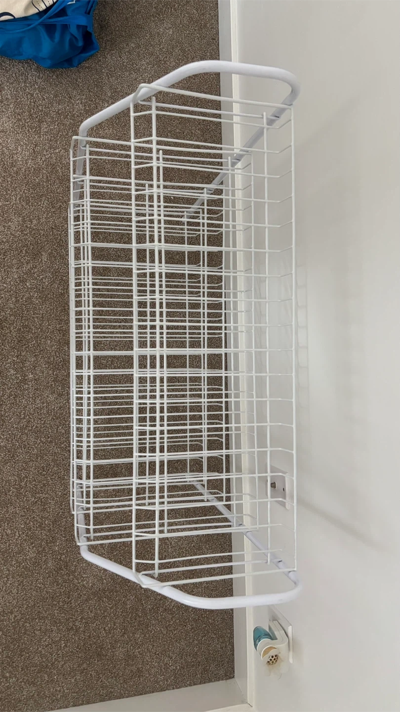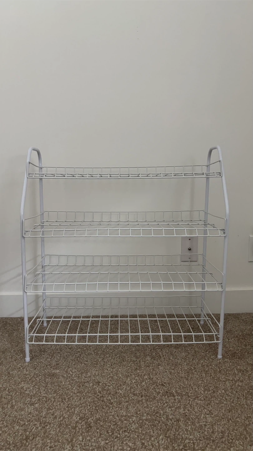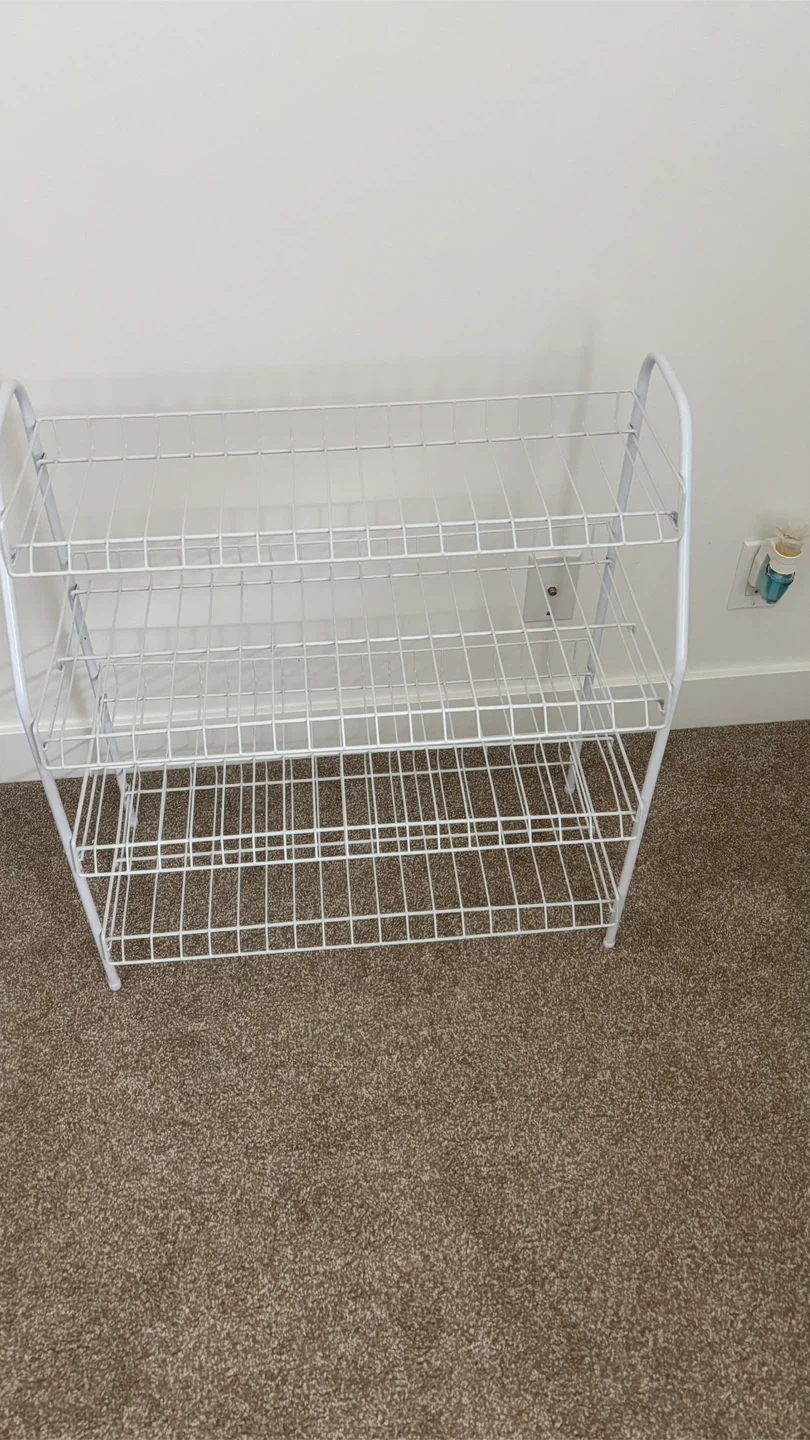 Looking to declutter your entryway? I'm selling a handy white metal shoe rack with three tiers. It's perfect for keeping your shoes organized and off the floor. Great for small spaces!