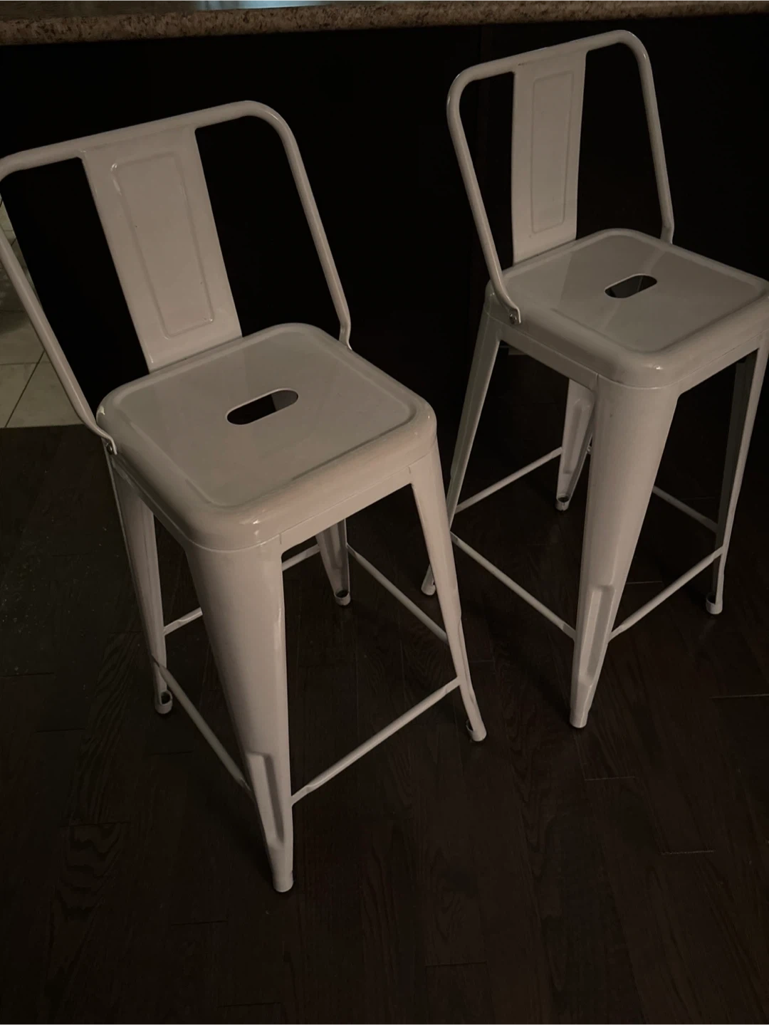 Selling 2 Nos - white metal bar stool. They are in great shape and would look great in any kitchen or bar area. It's sturdy and comfortable, perfect for enjoying a meal or a drink at your counter