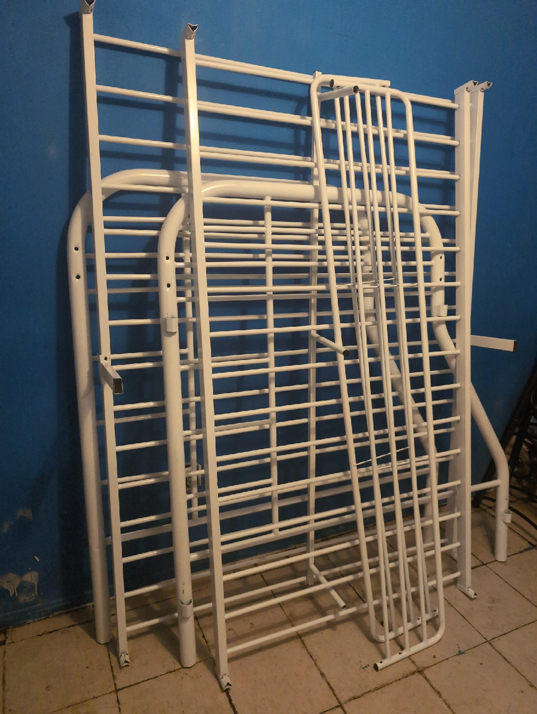 Selling a white metal bed frame. It's in good condition and ready for a new home! Perfect if you're looking for a simple and sturdy bed frame. bunk bed I real price is $70 karrot is the one changing the price located Kipling and Steeles Avenue West