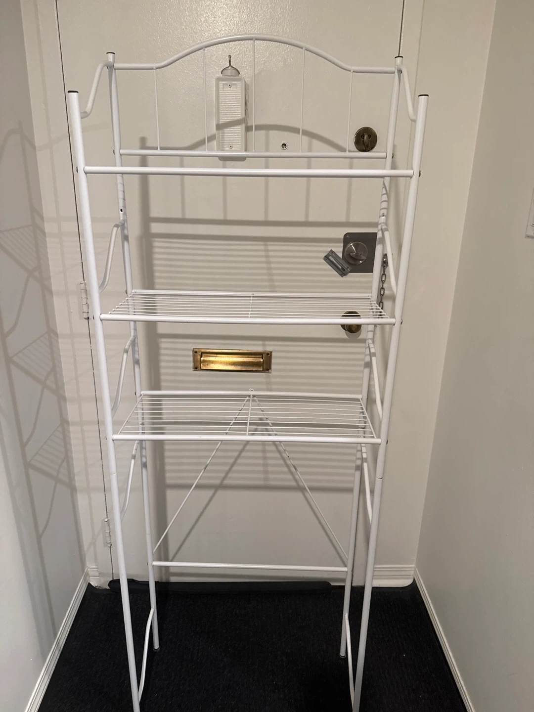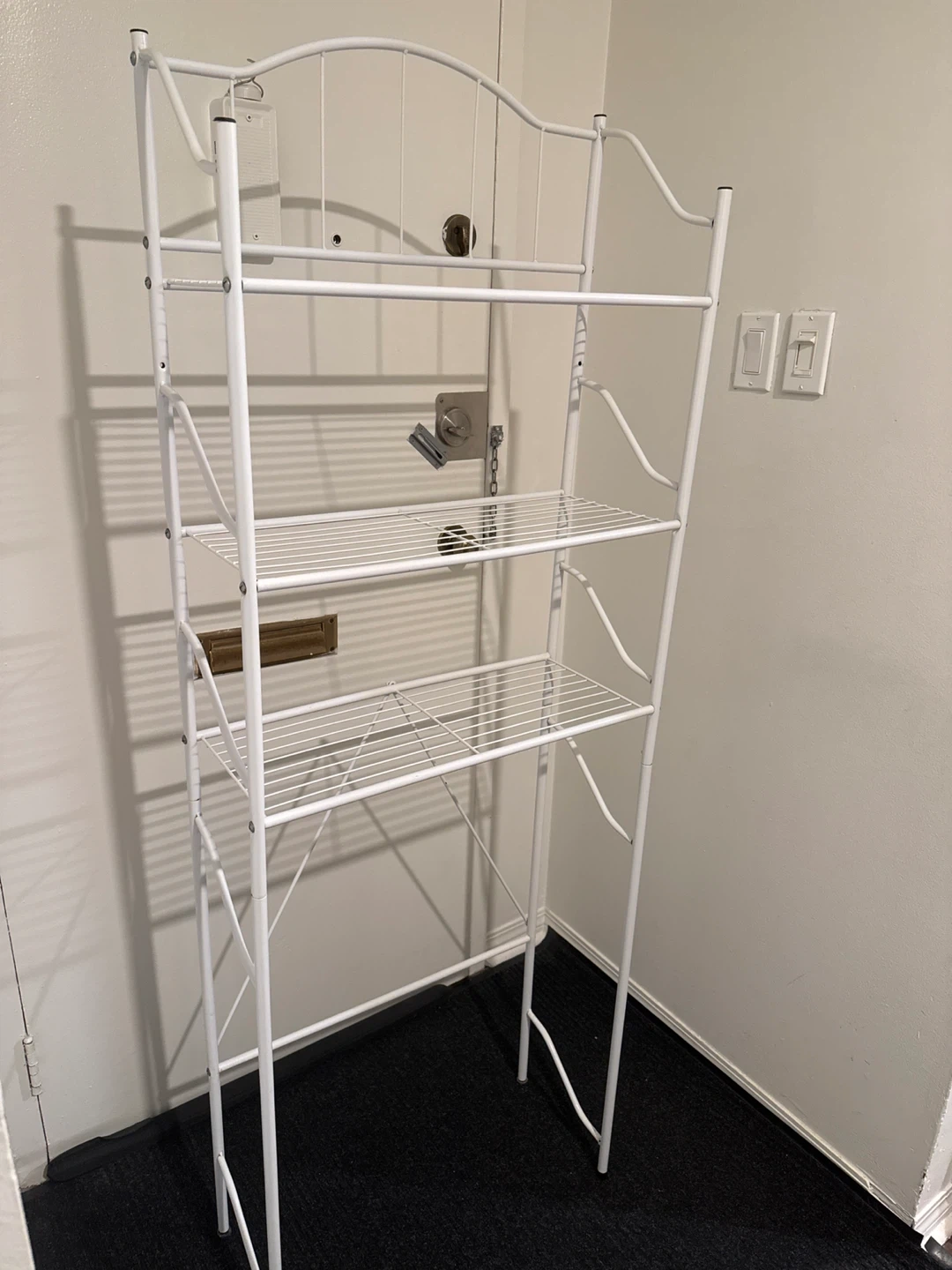 Declutter your bathroom with this handy over-the-toilet storage shelf! It's a great way to add extra storage space without taking up too much room. Perfect for small bathrooms or anyone who needs a little more organization