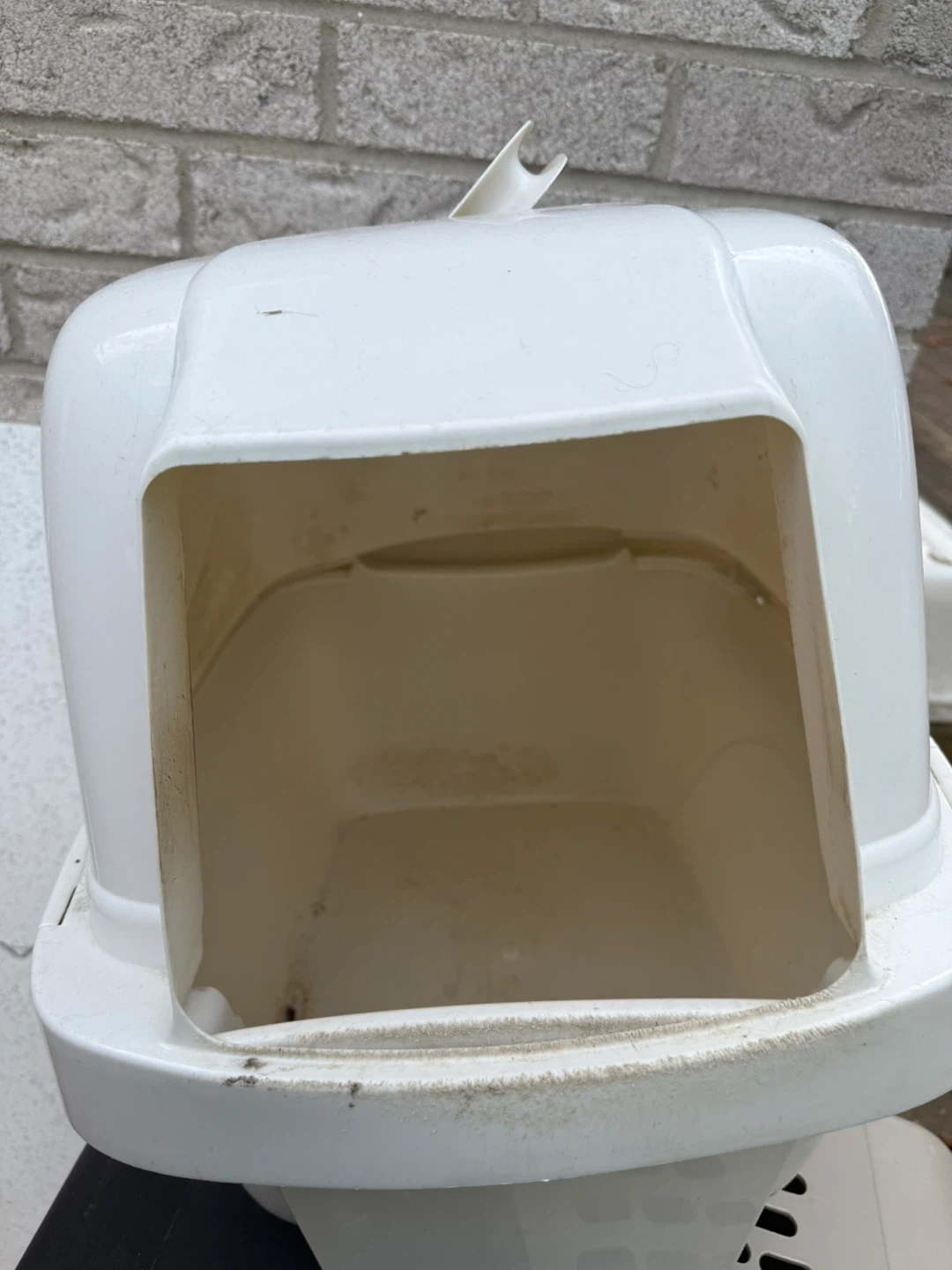 Selling a used white plastic cat litter box. It's in good condition and ready for a new home for your feline friend
