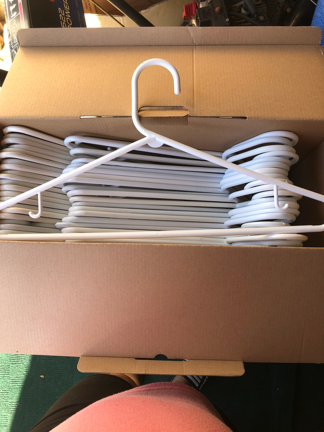 🧡 one box of white plastic hangers, containing 40 hangers. There are five boxes in total, but one or buy all, your decision