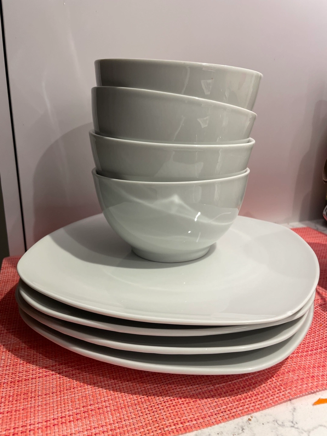 Selling a set of white plates and bowls. They're in great shape and ready for a new home! Perfect for everyday use or special occasions