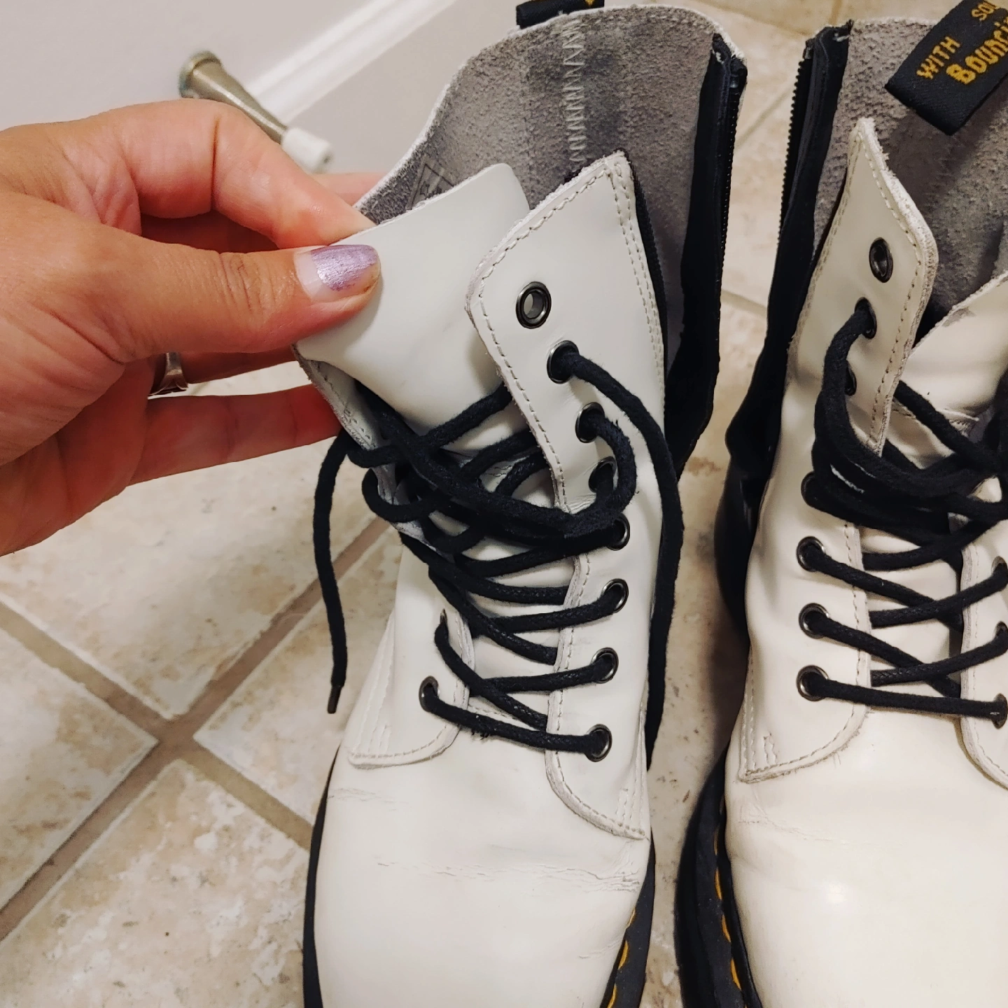 Selling a pair of Dr. Martens platform boots in white. Leather Women's boots