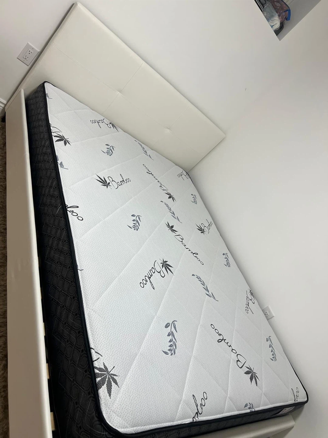 Selling a Bamboo mattress. It's in great condition and ready for a new home! The mattress features a white top with a leaf pattern and a black border. Intersection Mississauga Rd And Williams Parkway