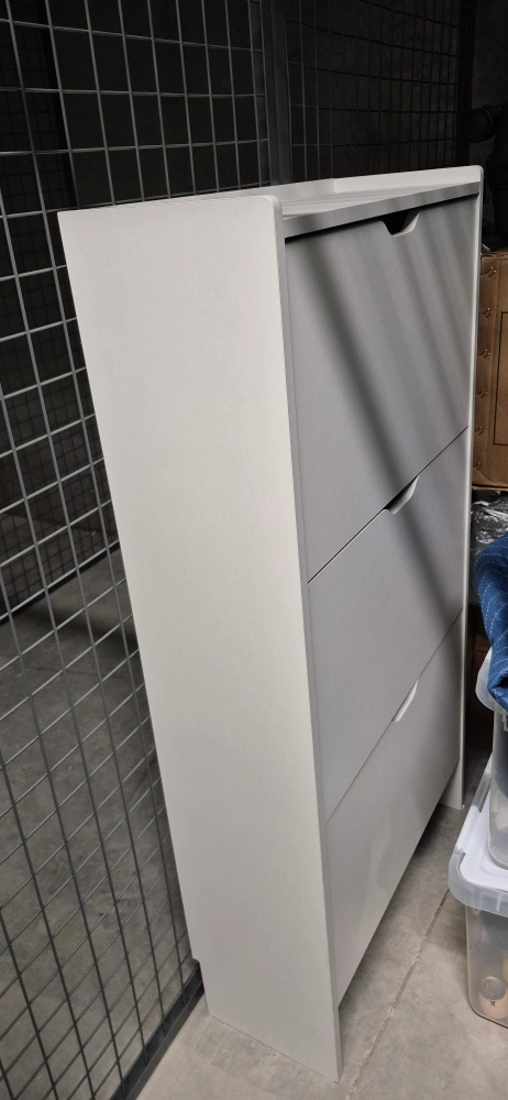White shoe cabinet with three tiers to store your shoes. Assembled but did not end up using and is just in storage now. Dimensions: 60 x 24 x 118 cm (23.62" x 9.45" x 46.46") Originally purchased for $120, asking for $110 OBO