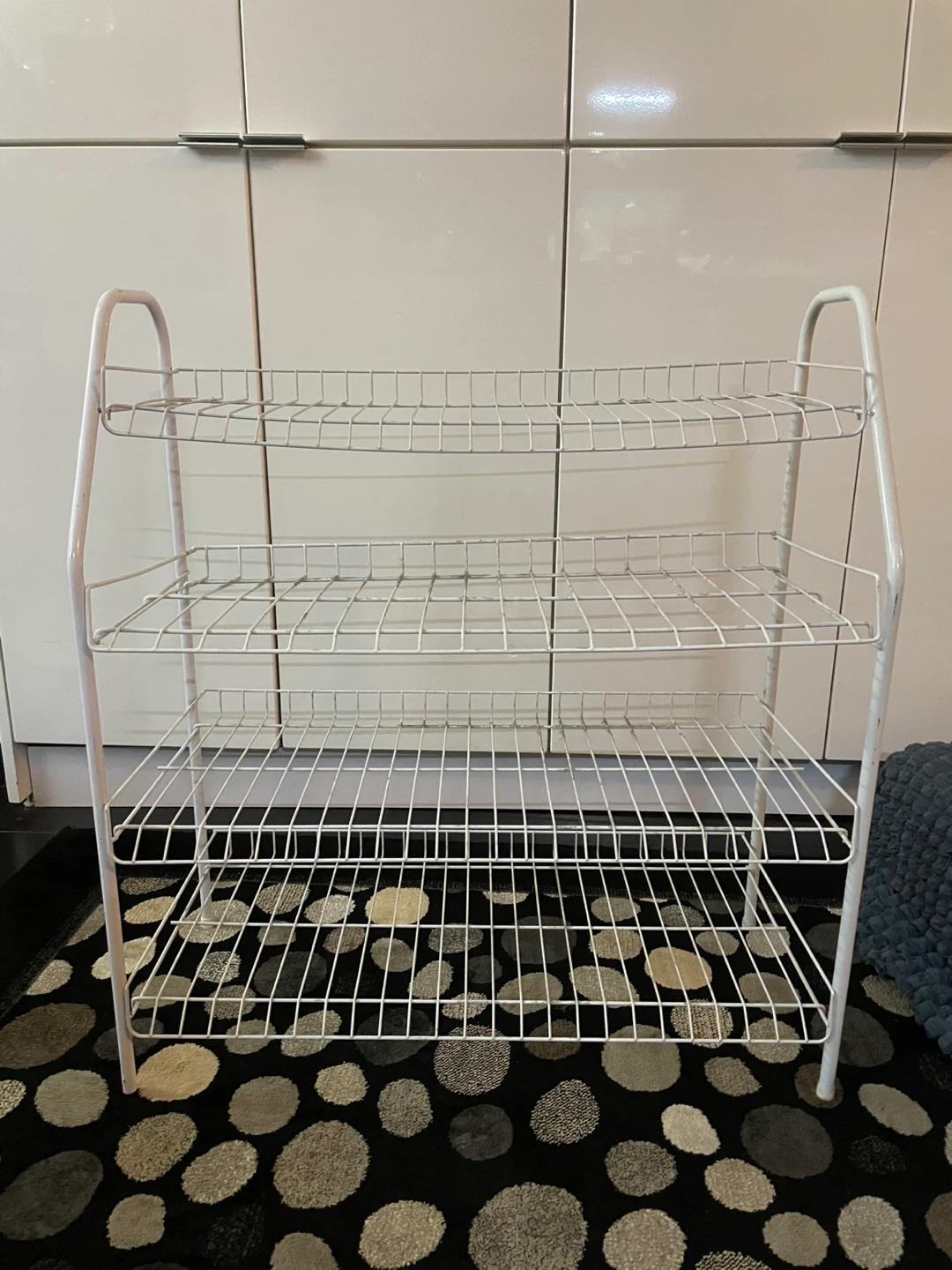 Selling a handy white shoes shelf rack! It's perfect for adding extra storage space in your kitchen, bathroom, or anywhere else you need it. It's in great condition and ready for a new home.