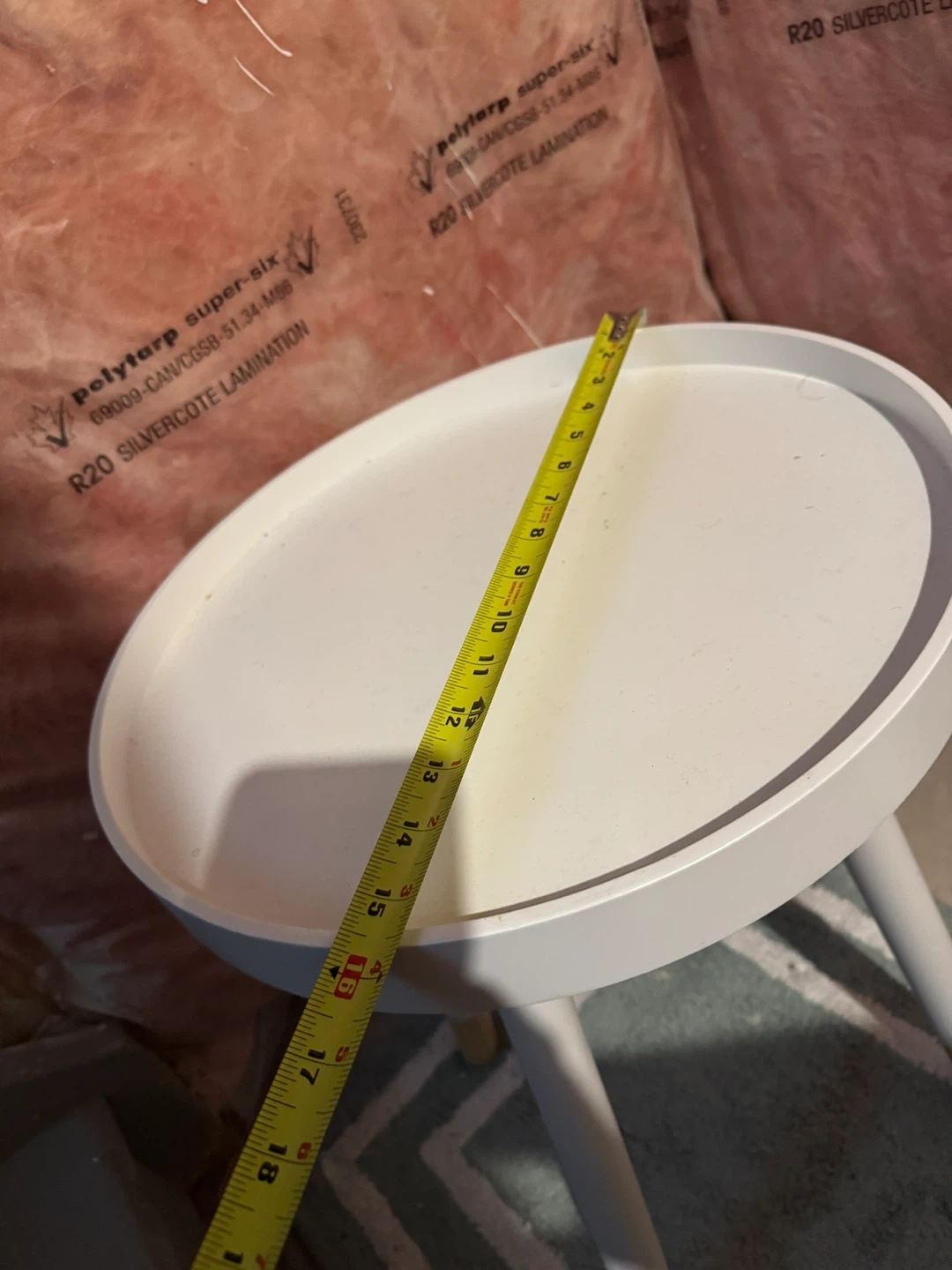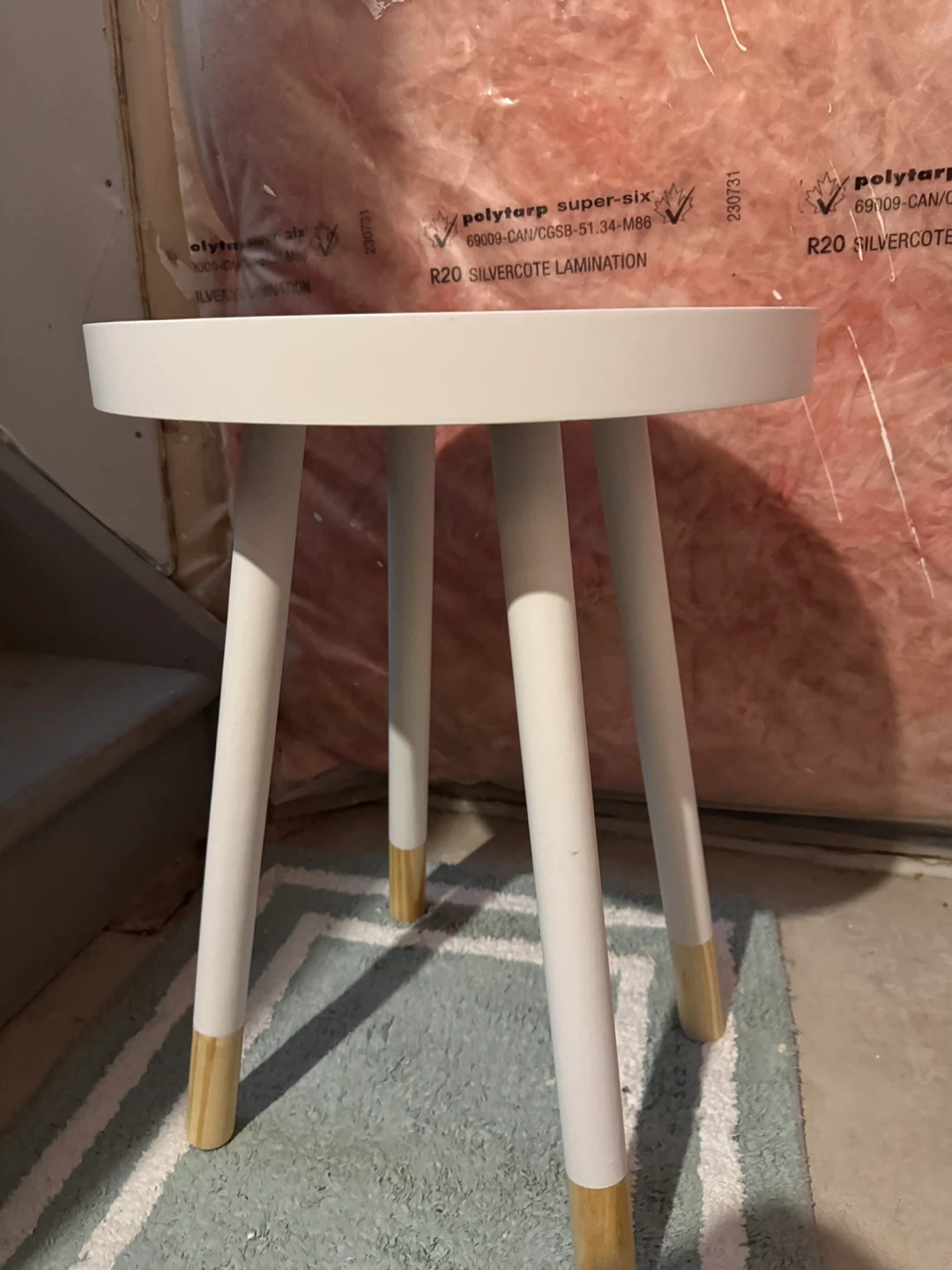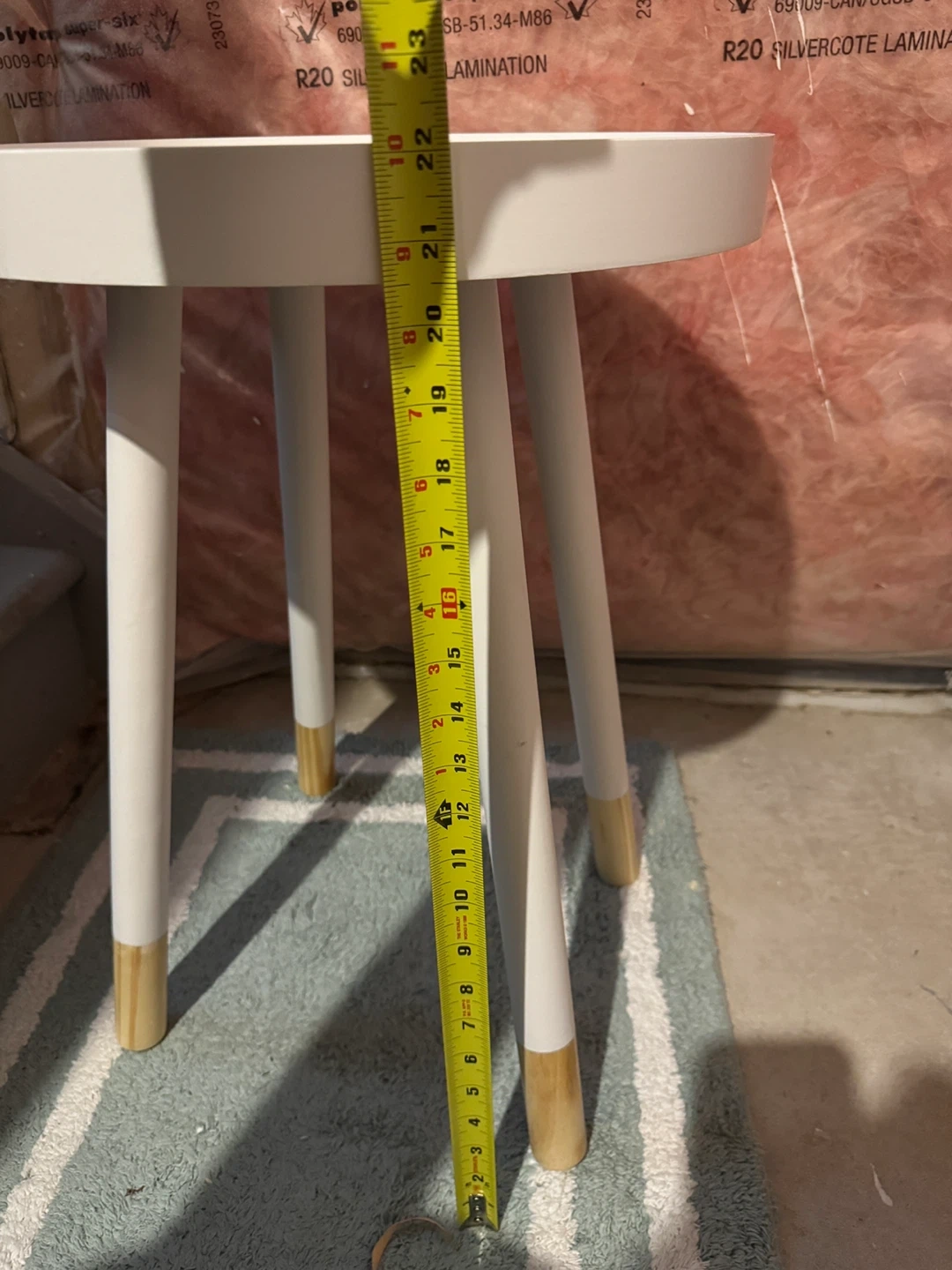 A cute little white side table perfect for any room! It's in great shape and measures approximately 18 inches in diameter and 23 inches in height. It would be a great accent table for your living room or bedroom