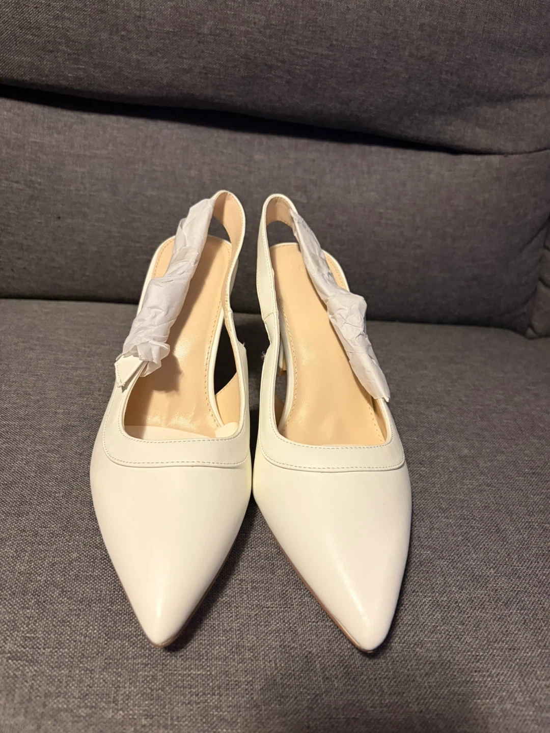 Selling a pair of white slingback heels in a size 8. Perfect for a dressy occasion or to elevate your everyday look. The heel height is comfortable enough for all-day wear. Don't miss out!