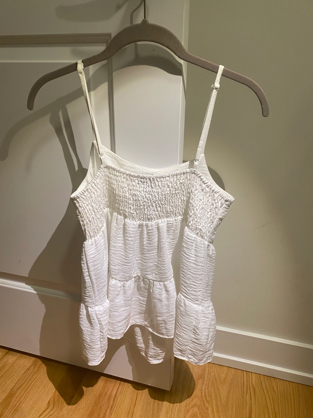 Selling a cute white flowy spaghetti strap top. It's in great condition and perfect for summer! The top is a size medium.