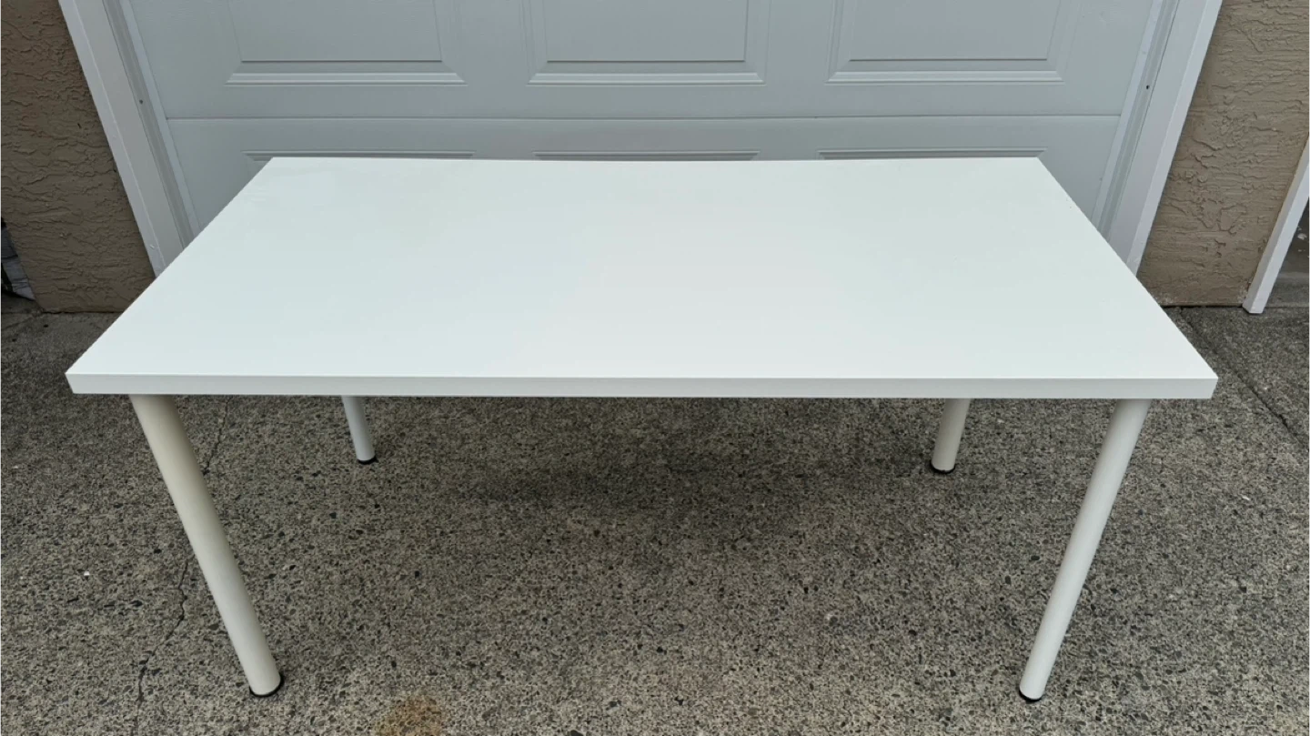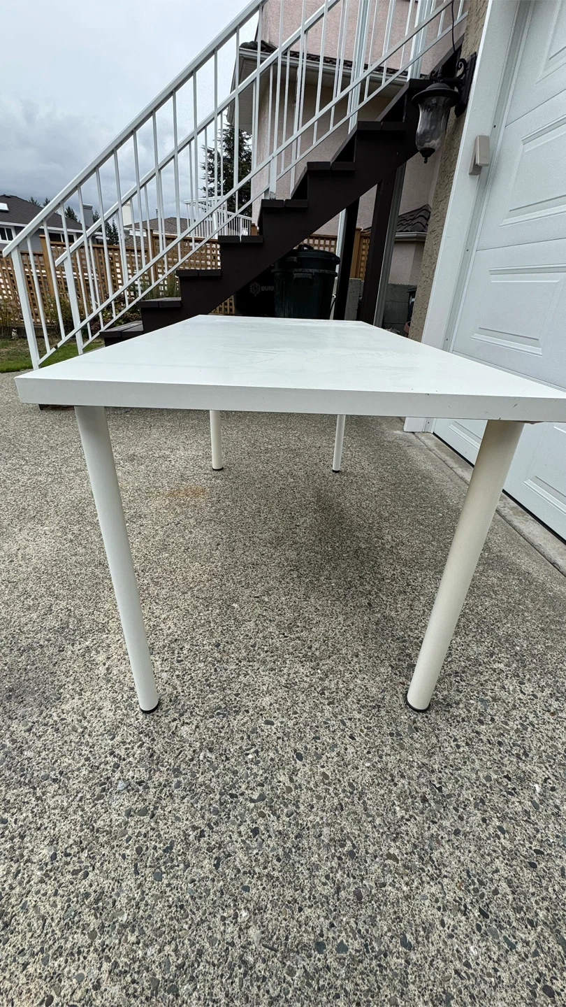 Selling a white table that measures approximately 59 inches in length and 29.5 inches in width Perfect for a dining table or desk! Buyer responsible for pick up. Thanks!